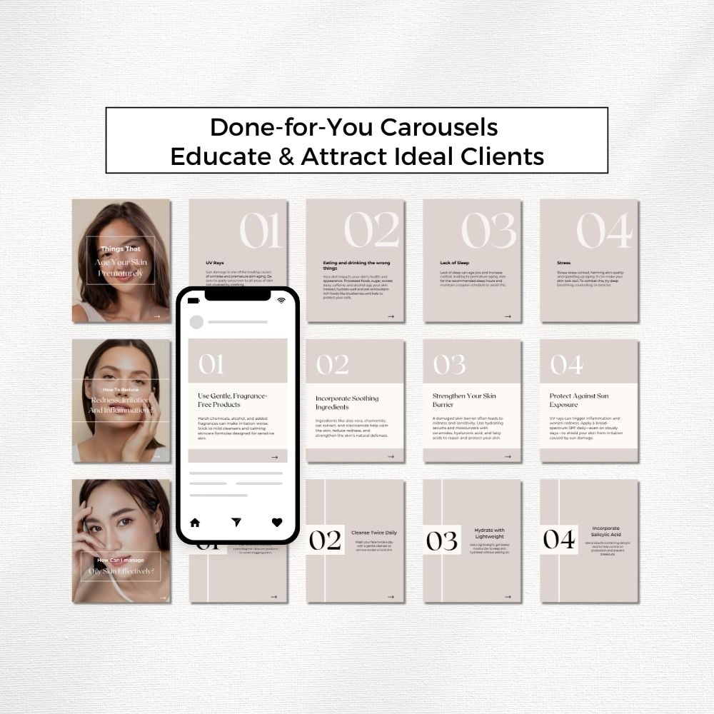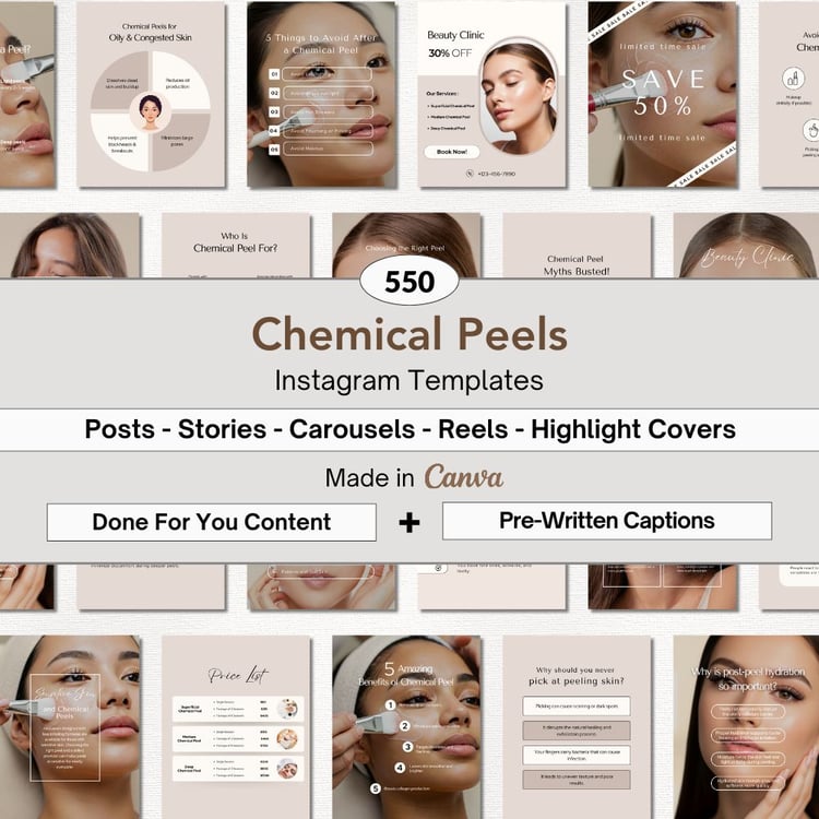Elevate Your Skincare Brand! Introducing our stunning collection of Instagram templates crafted for Estheticians, Skincare Professionals, bloggers, influencers and anyone who wants Engaging Content for social media. Showcase your skincare products, share beauty tips, and connect with your audience in style. These templates are designed to enhance your brand's visual appeal and engage your community. Elevate your social media presence, build a loyal following, and let your skincare journey unfold with these customizable templates.