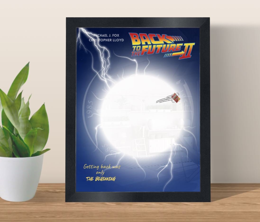 Plonge dans Retour vers le Futur II avec cette affiche au format 18×24 cm (7.08 × 9.44 pouces), idéale pour exposer ta LEGO DeLorean Speed Champions #77256.