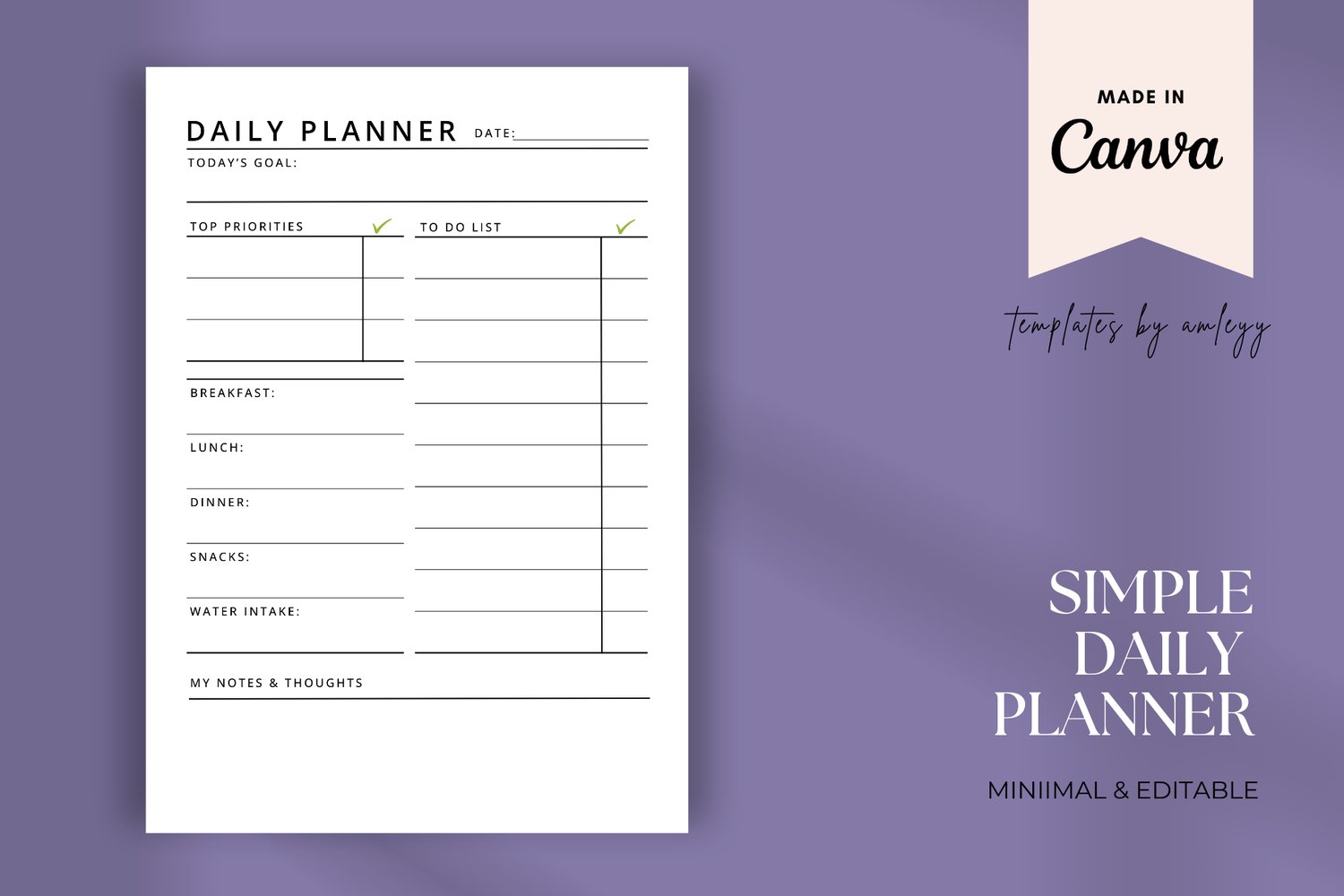 Simple Daily Planner Template | Canva Editable Planner | Minimalist Printable PDF | Perfect for Daily Productivity & Organization
