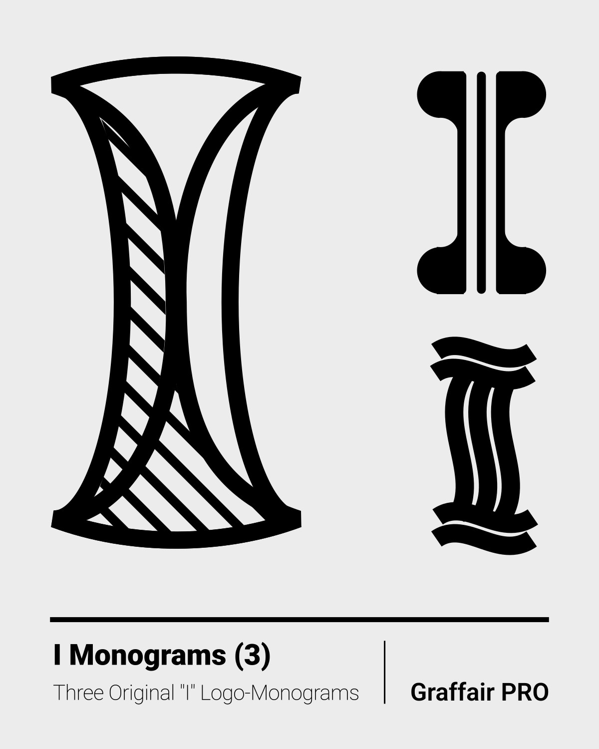 I Monograms (3): The 3rd set of three original "I" logo monograms, included in the "1050 SVG Monograms" super package, which also features an Index catalog.
