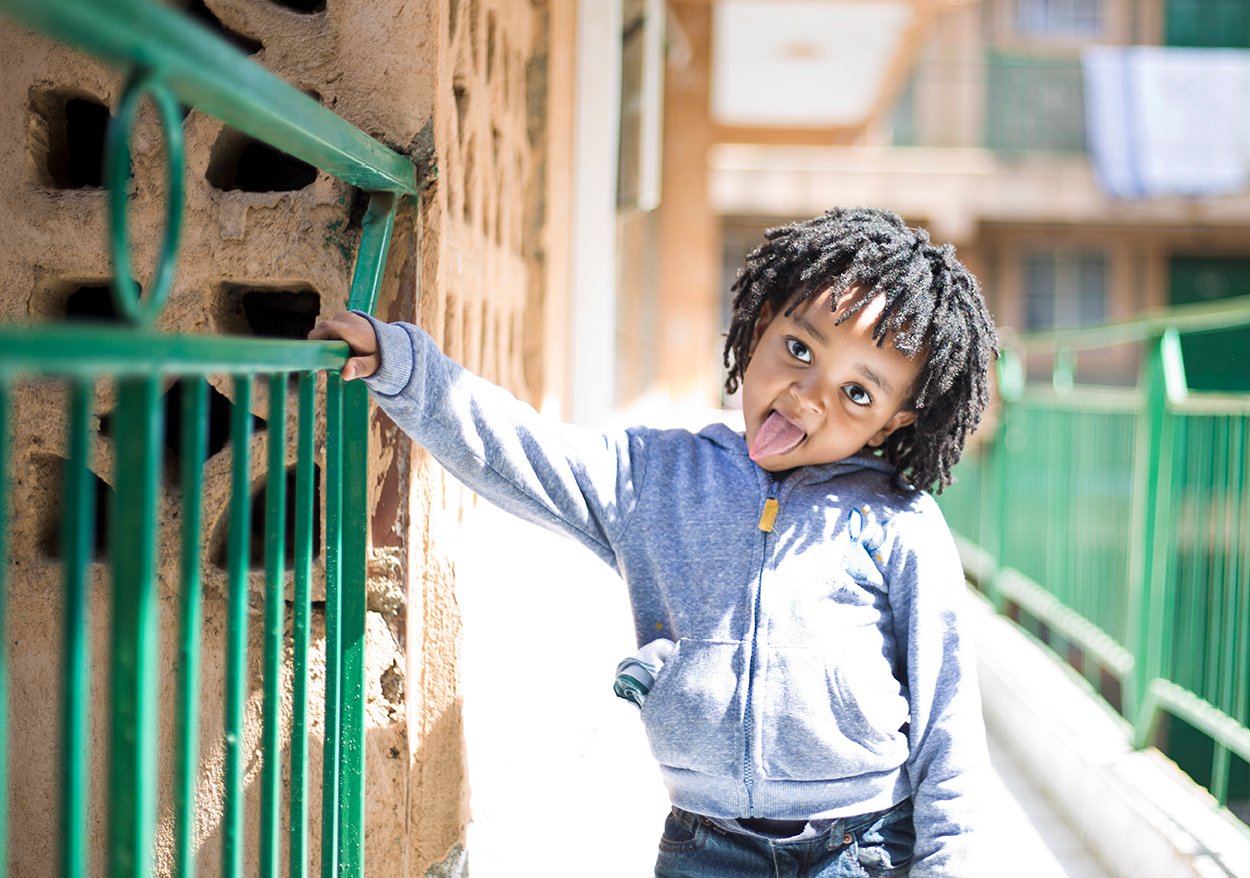 cheeky child sticking tongue out