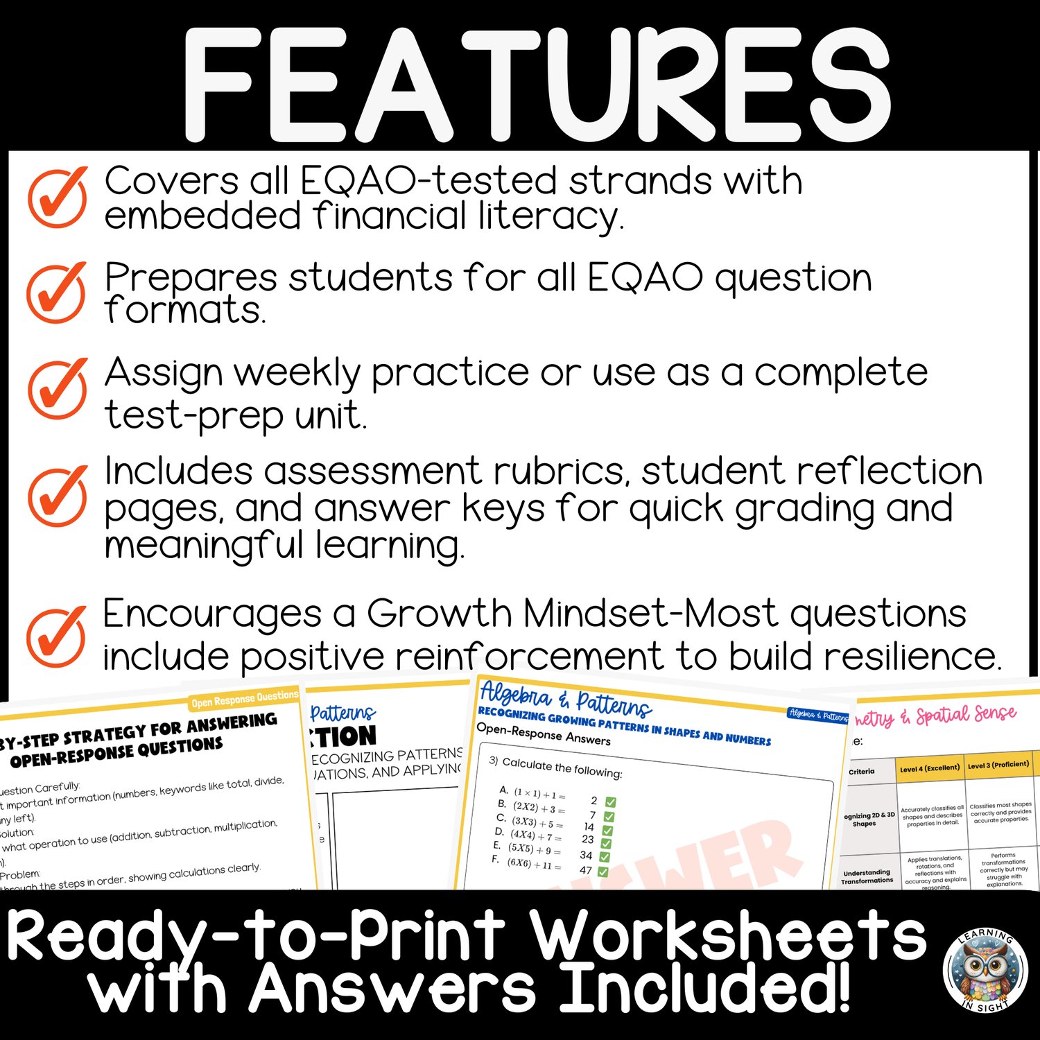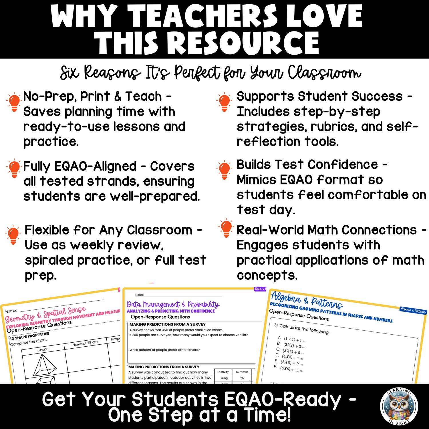 ✔ Financial Literacy, Number Sense, Algebra, Geometry & Data Management – Covers all EQAO-tested math strands.