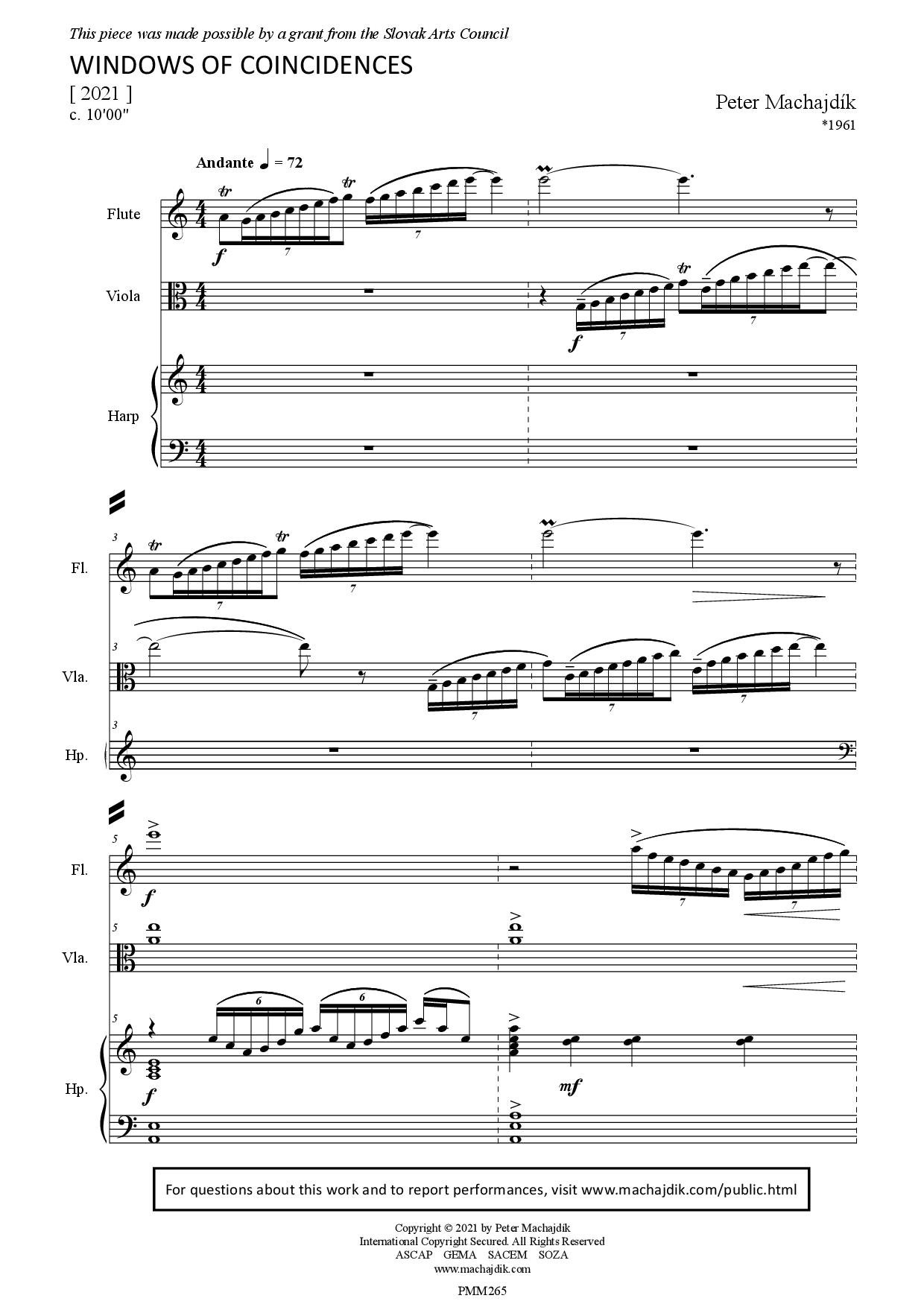 Peter Machajdík: WINDOWS OF COINCIDENCES for flute, viola and harp