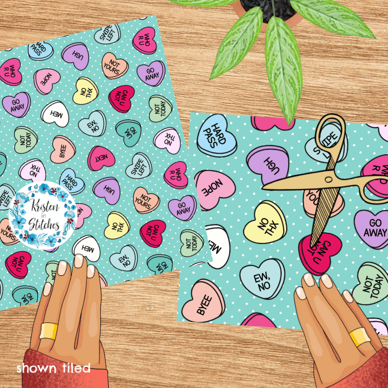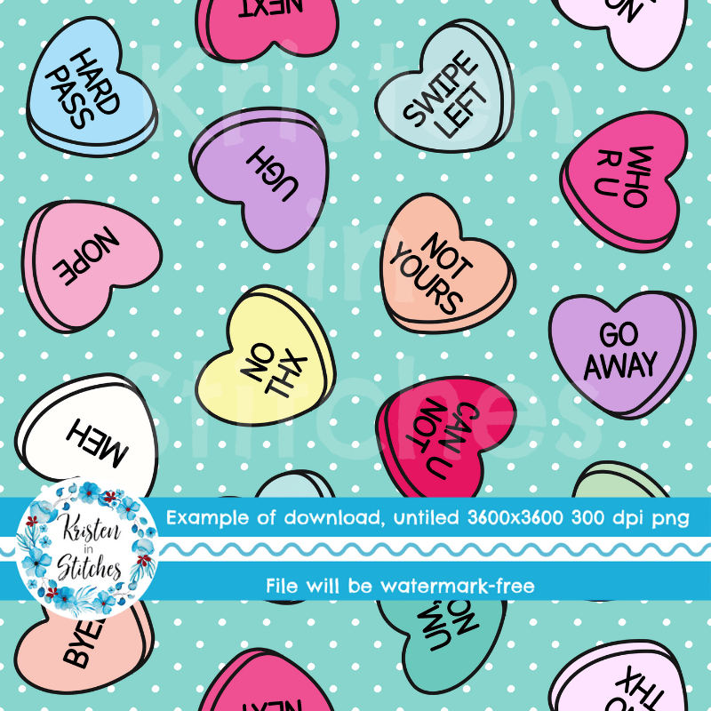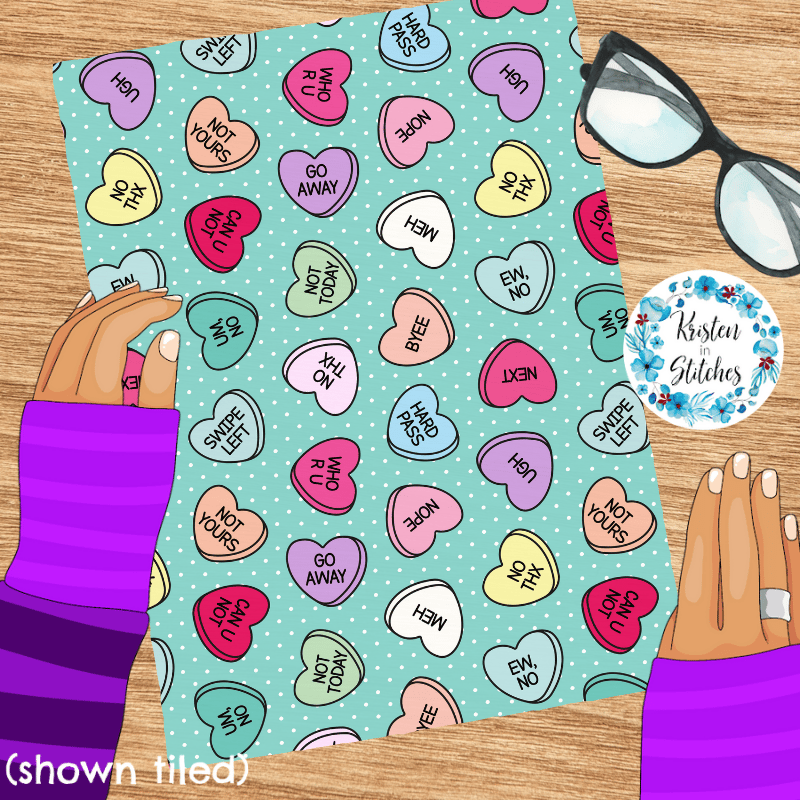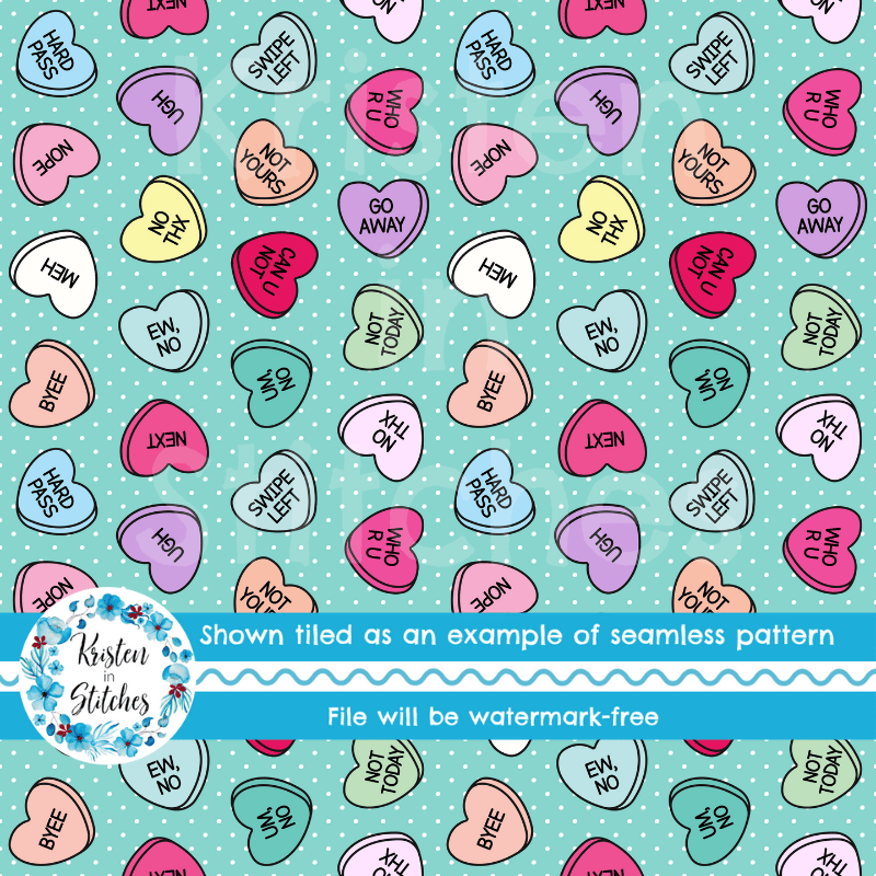 Sassy Anti-Valentine Seamless Pattern, Conversation Heart Candy