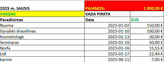 Su šia išlaidų lentele – biudžeto planuokliu: tikrai taip!