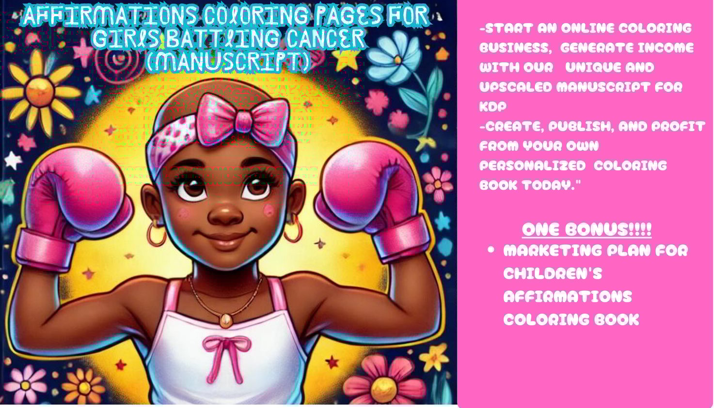 Are you dedicated to creating content that makes a real difference? Our exclusive Coloring Book Manuscripts are designed to bring hope and courage to girls battling cancer. These manuscripts are perfect for authors, educators, and organizations who want to share powerful messages of strength and positivity.