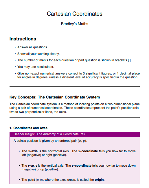 IGCSE Extended Level Maths: Cartesian Coordinates (Worksheet & Model Answers)