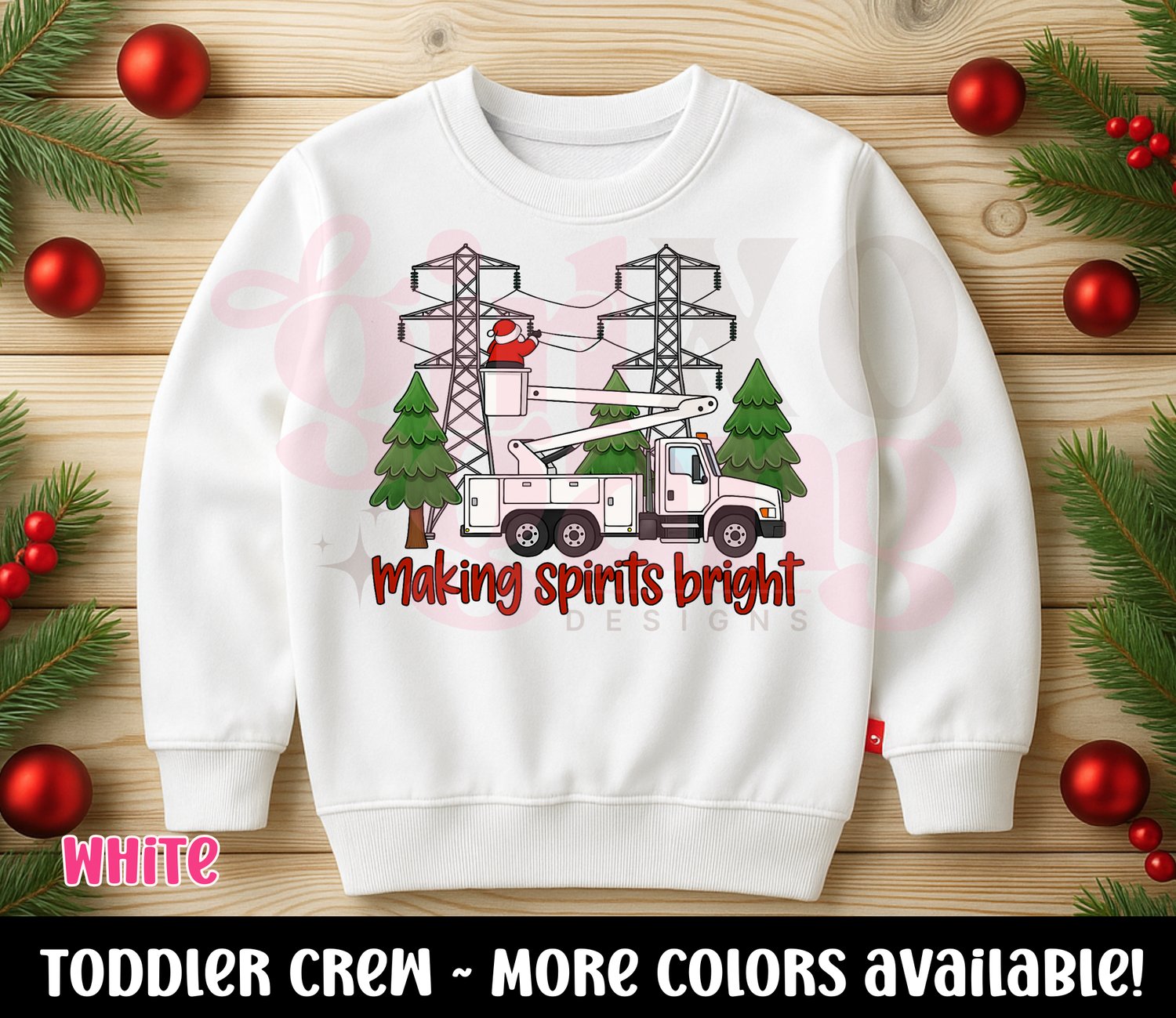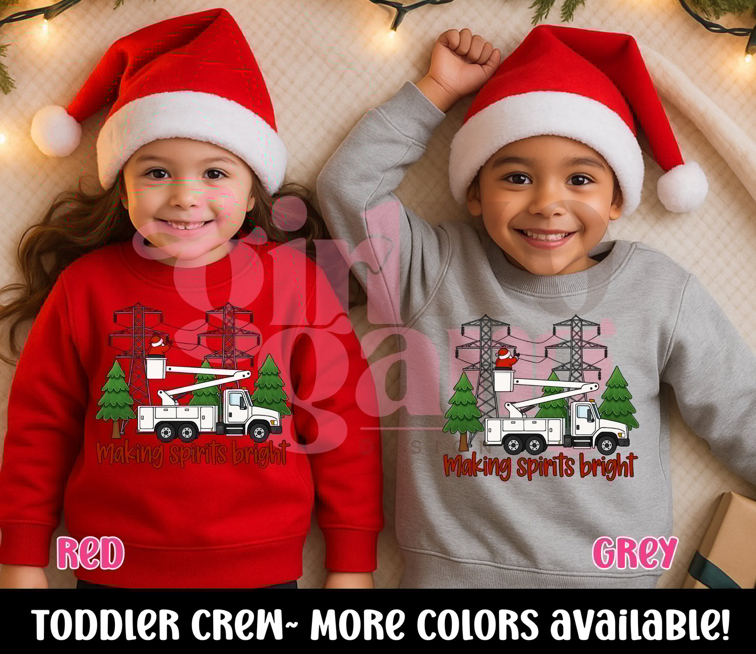 Kids Transmission Lineman Christmas sweater, unisex crewneck, making spirits bright Santa bucket truck sweatshirt