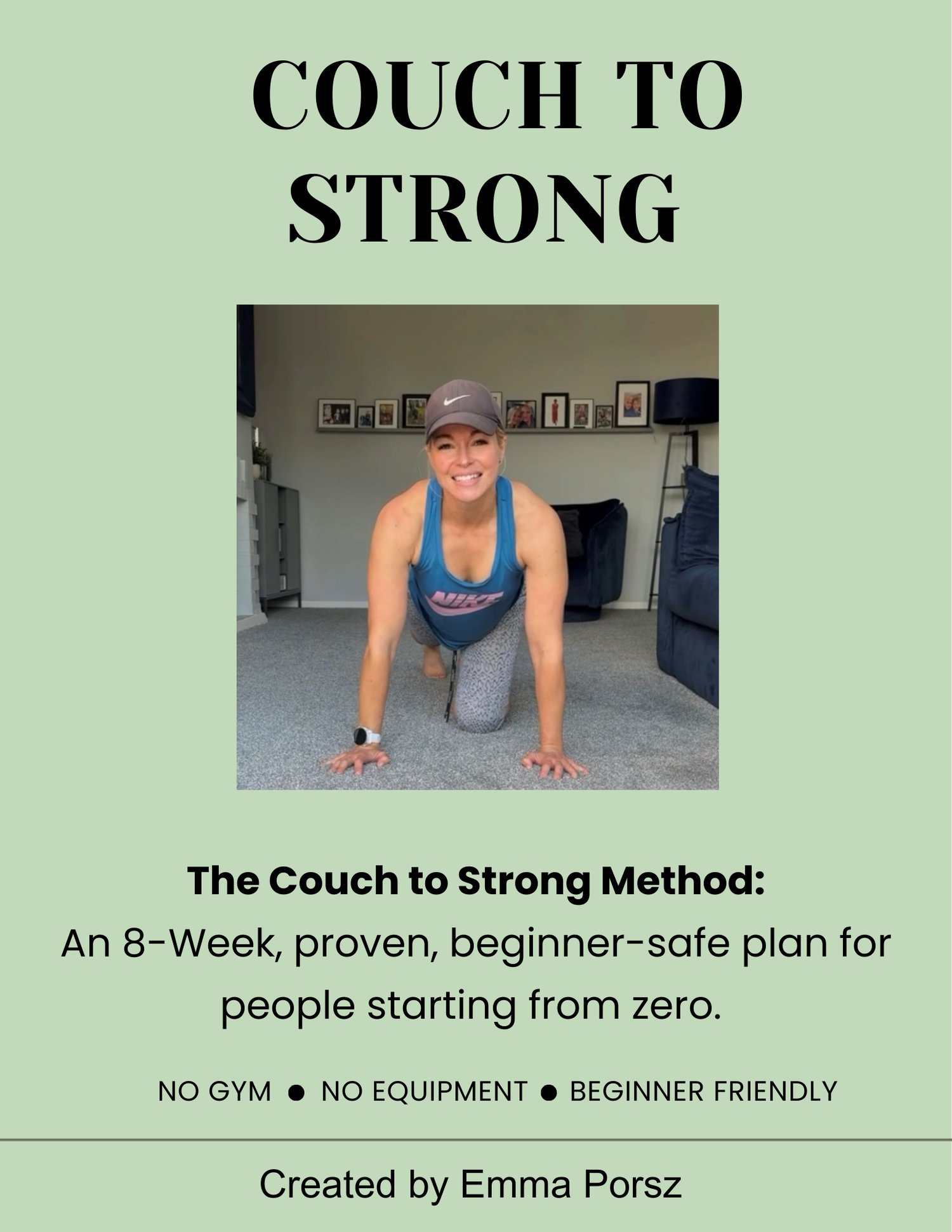 Couch to Strong is a beginner-friendly 8-week strength programme designed for people who are starting from zero, returning to exercise, or feeling unsure where to begin.