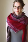 Asymmetrical increases create an elongated triangle shape, and Rosy Green Wool’s Cheeky Merino Joy will keep you toasty warm.