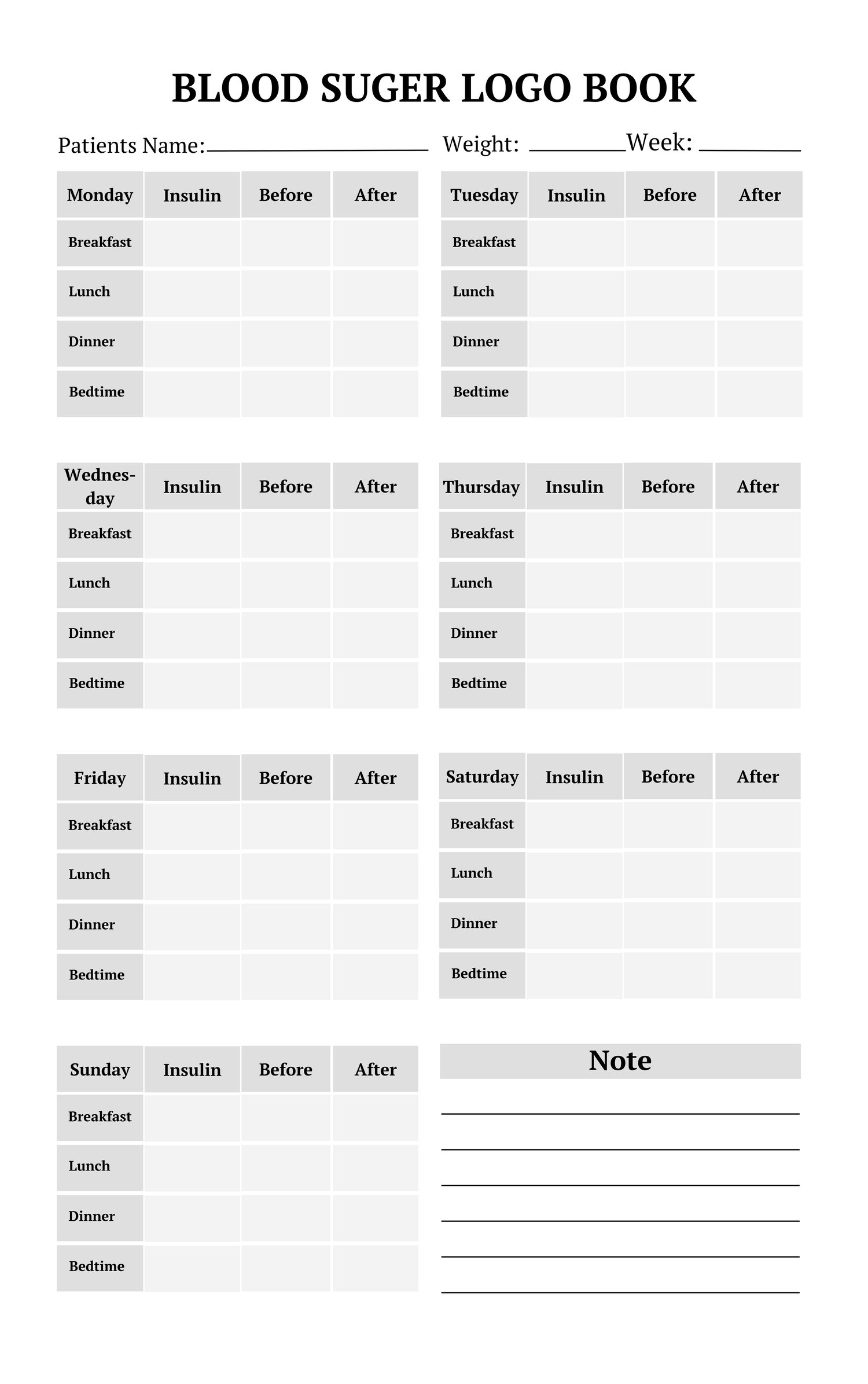 Blood Sugar Log book/Diabetes log book for record blood sugar/Digital Download/PDF for print or upload.