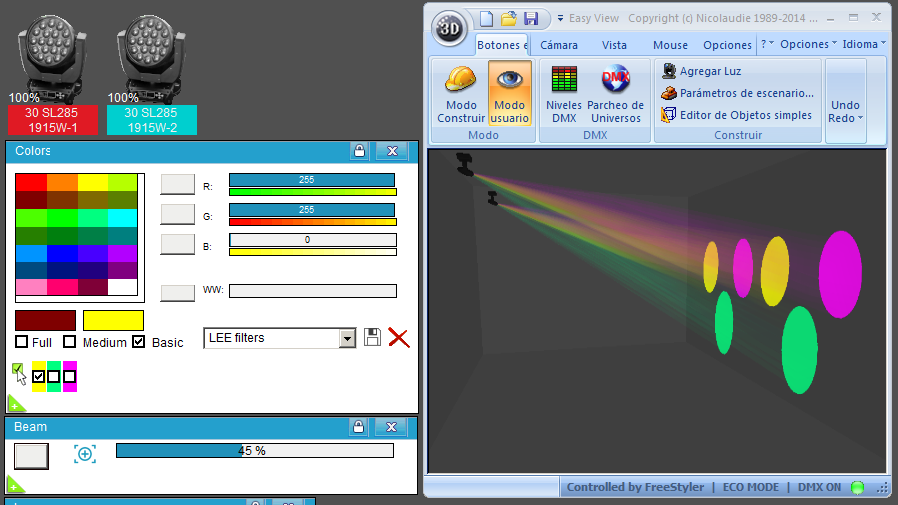 Esta Librería SSL2 está optimizada para trabajar con Magic 3d Easy View. Es decir para ver una representación 3D de las secuencias que estemos realizando con Freestyler, QLC+ o cualquier otro soft que se conecte con Magic 3d.