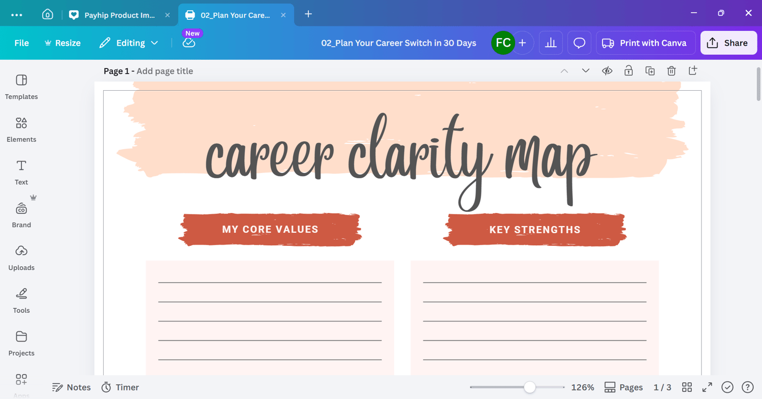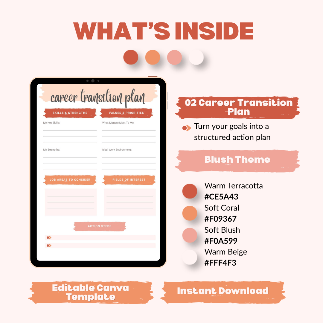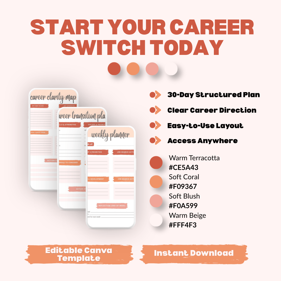 Career Change Planner Template | Plan Your Career Switch in 30 Days (Editable Canva)