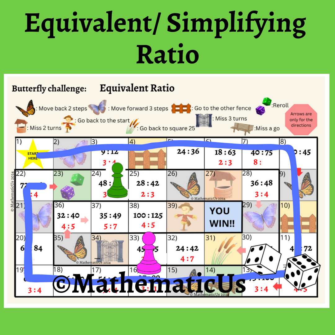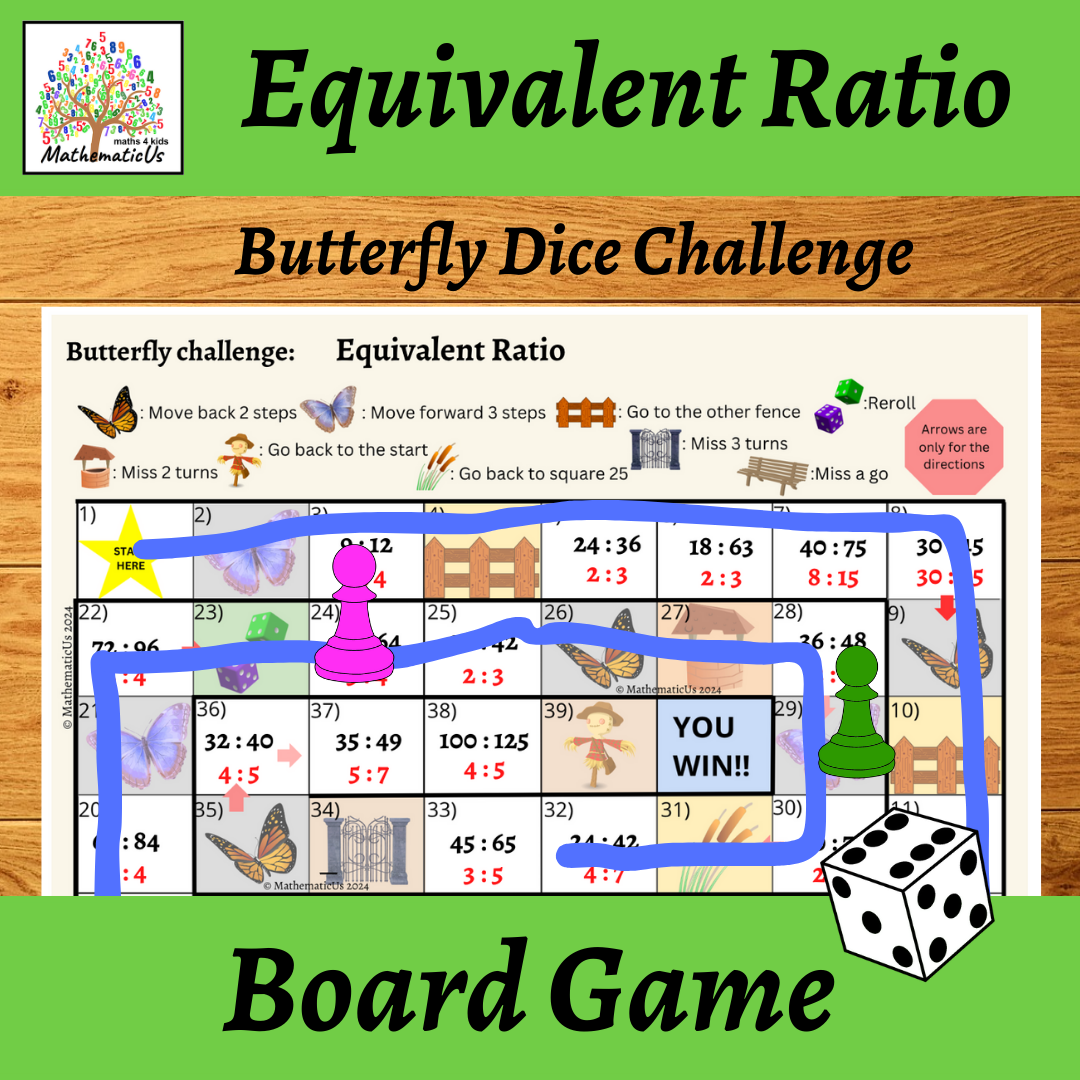 Equivalent Ratio Butterfly Board Dice Game