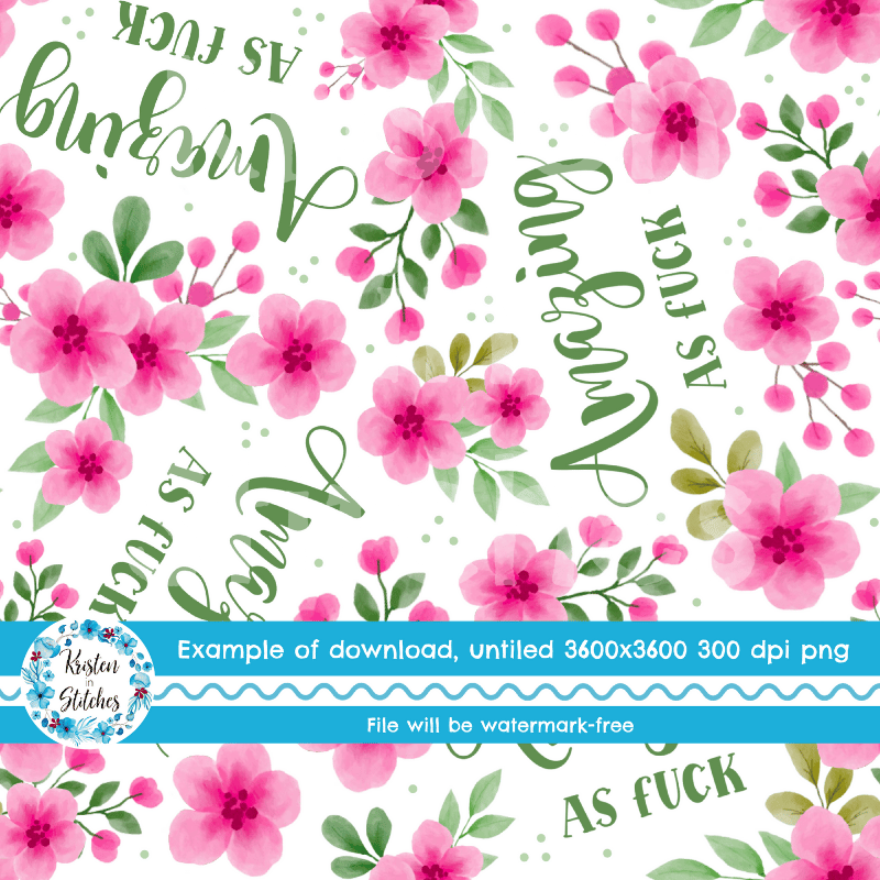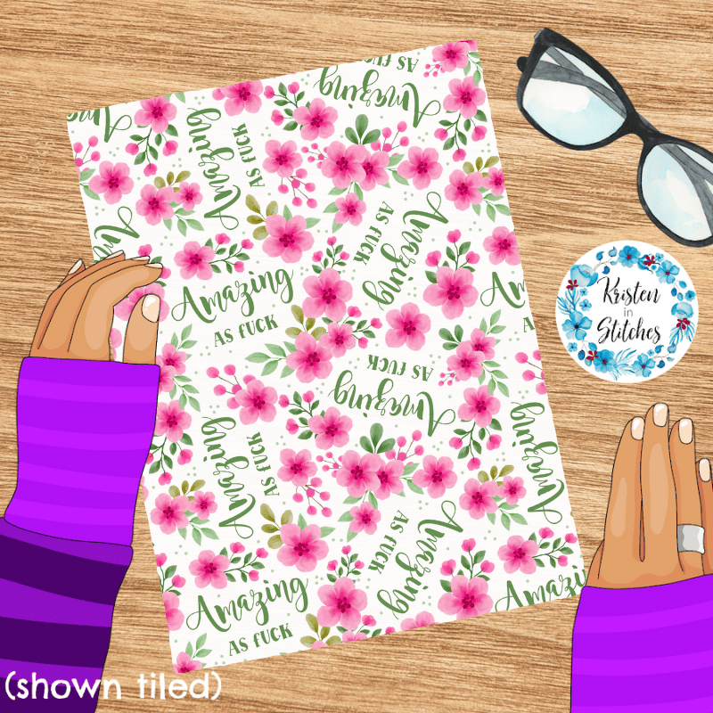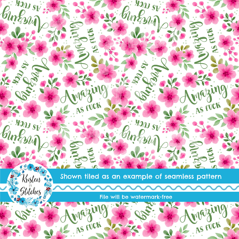 Amazing as Fuck Sarcastic Sweary Seamless Pattern, Pretty Floral Profanities