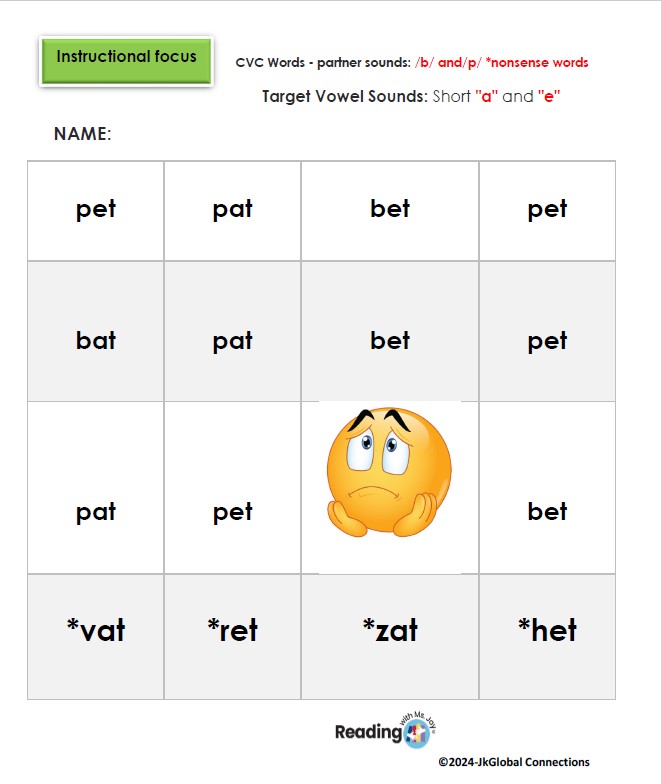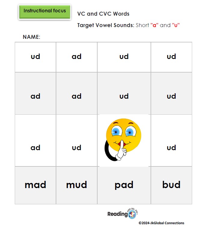 Description: VC (Vowel-Consonant) and CVC (Consonant-Vowel-Consonant) words measure how quickly and accurately learners can recognize and decode these word patterns. 4 pages!