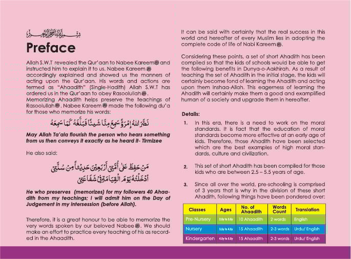 Considering these points , a set of short Ahadith has been complied so that the kids of schools would be able to get the following benefits in this world and here after.