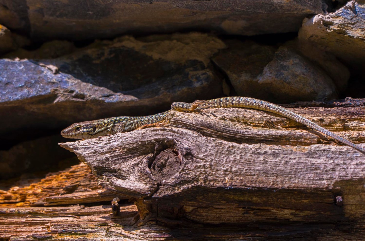 Portrait of a lizard sunbathing in its usual habitat.