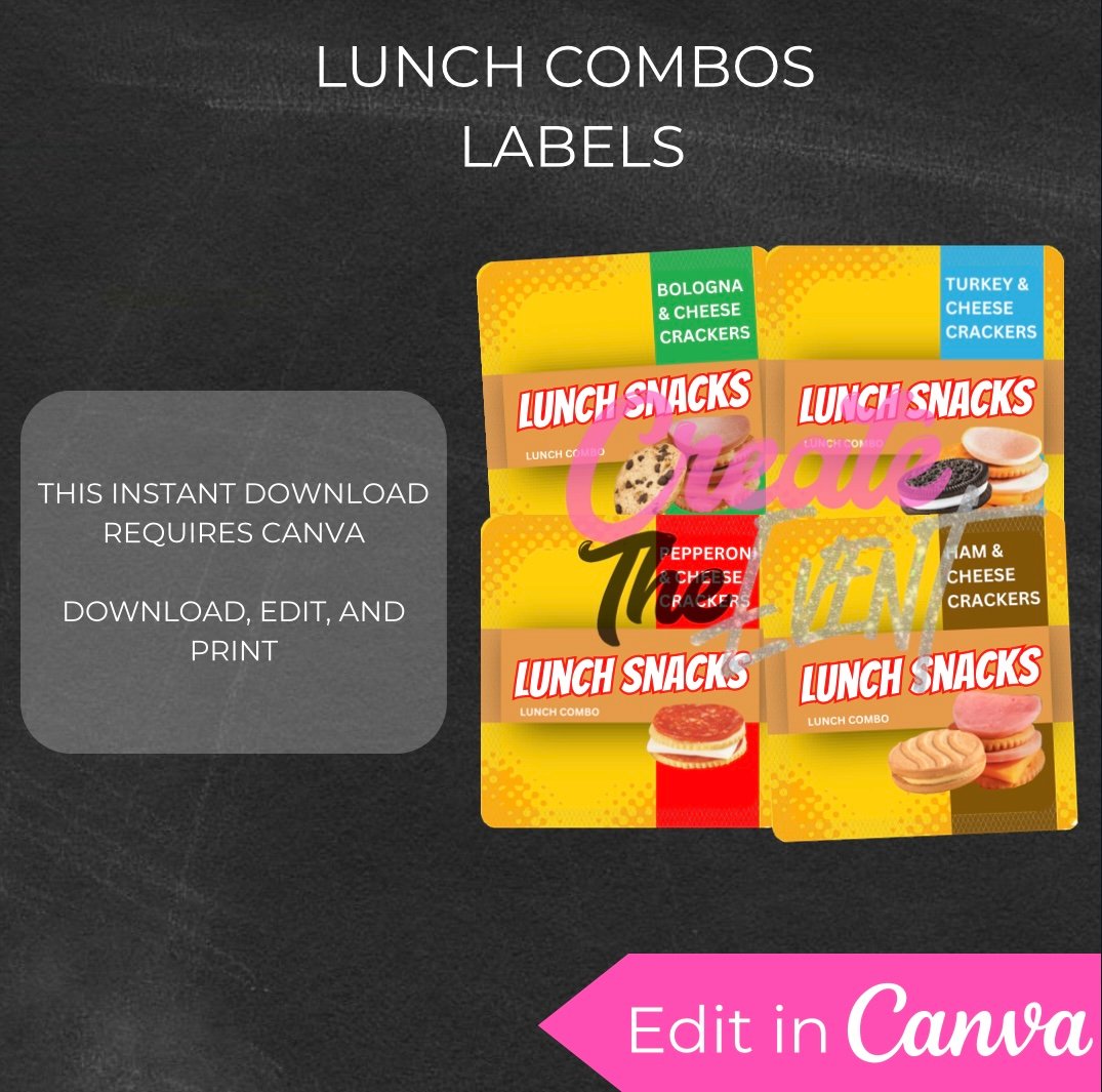Perfect for birthday parties, school treats, or creative lunch drops, this set delivers high-quality labels in four traditional lunch combo flavors — ready to print and serve.