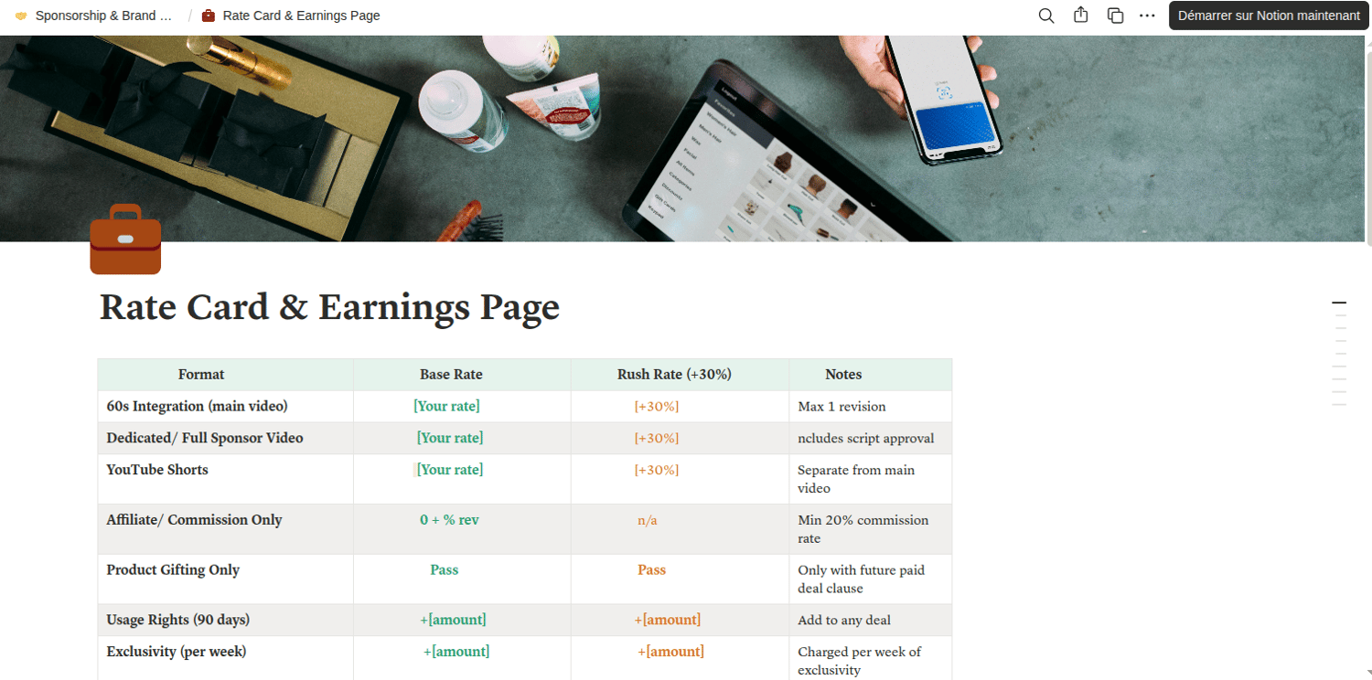 ✓Rate Card template with 7 deal formats pre-filled