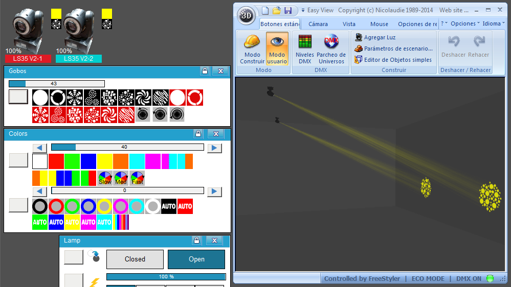 Esta Librería SSL2 está optimizada para trabajar con Magic 3d Easy View. Es decir para ver una representación 3D de las secuencias que estemos realizando con Freestyler, QLC+ o cualquier otro soft que se conecte con Magic 3d.