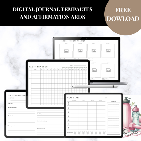 Digital Weight Loss Journal + Fitness Planner + Affirmation Cards | Instant Download Templates