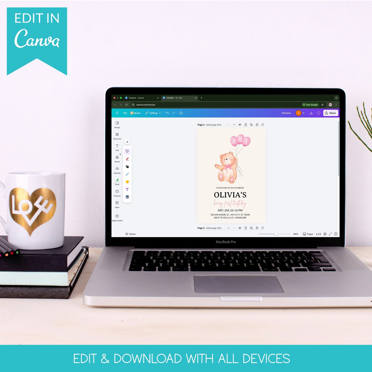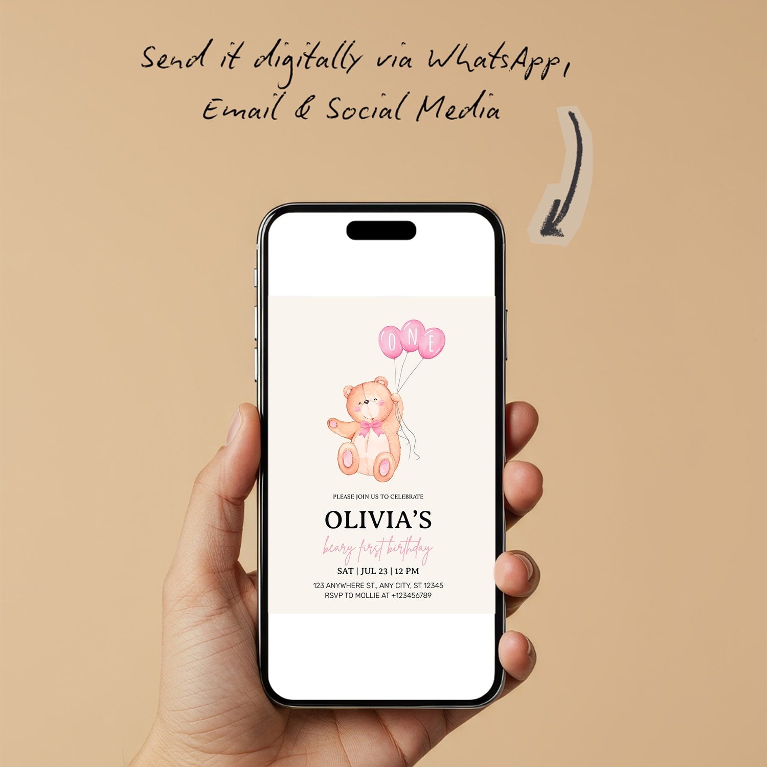 ✔ Fully customizable text (name, age, date, time, location, RSVP)