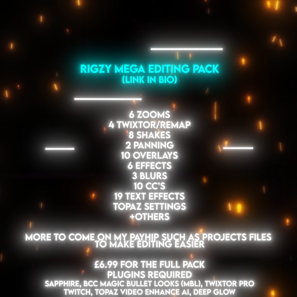 Take your edits to the next level with Rigzy’s Mega Editing Bundle Pack – the all-in-one toolkit designed for cinematic, high-quality, and viral-worthy edits. Whether you're an editor working on TikTok's, AMVs, gaming clips, or movie edits, this pack gives you everything you need to create professional-level content effortlessly