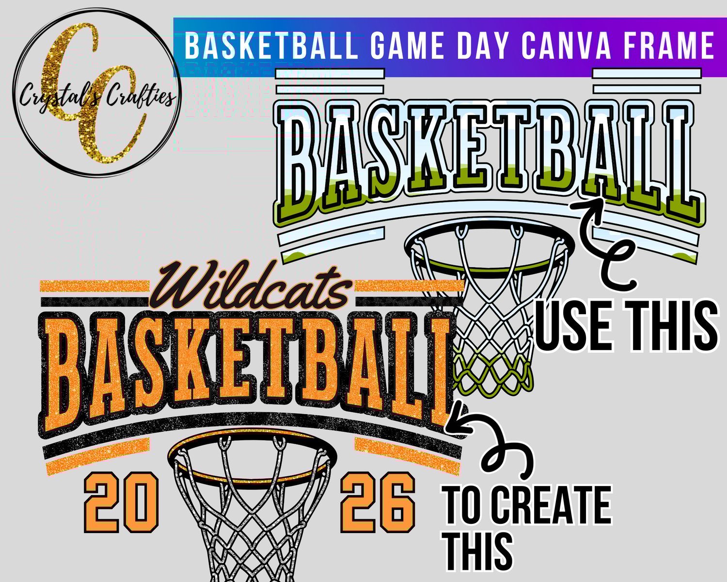 Bring big game energy to your designs with this Basketball Canva Frame featuring an arched collegiate-style “BASKETBALL” headline! Perfect for school spirit wear, team merch, banners, digital graphics, and custom fan gear, this frame lets you easily add your own photo, pattern, or texture directly inside Canva.