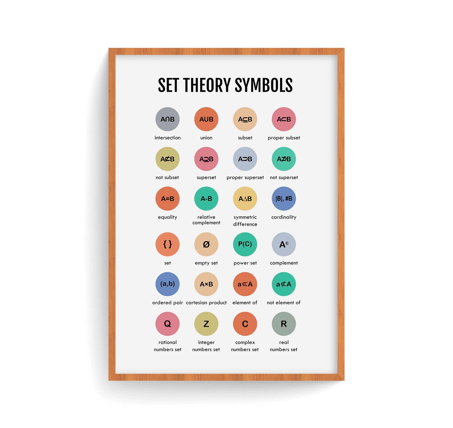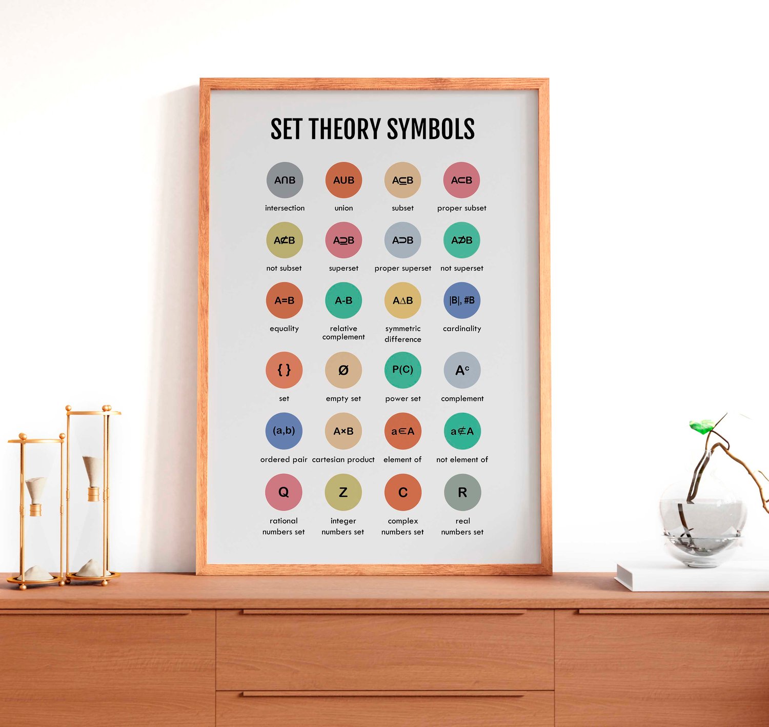 Set Theory Symbols Math Poster, Math Poster, Kids Room Decor, Classroom Decor, Math Wall Art, Elementary School, Home Schooling, Educational Wall art, Set Theory Symbols, Digital Download (3 Jpeg Files)