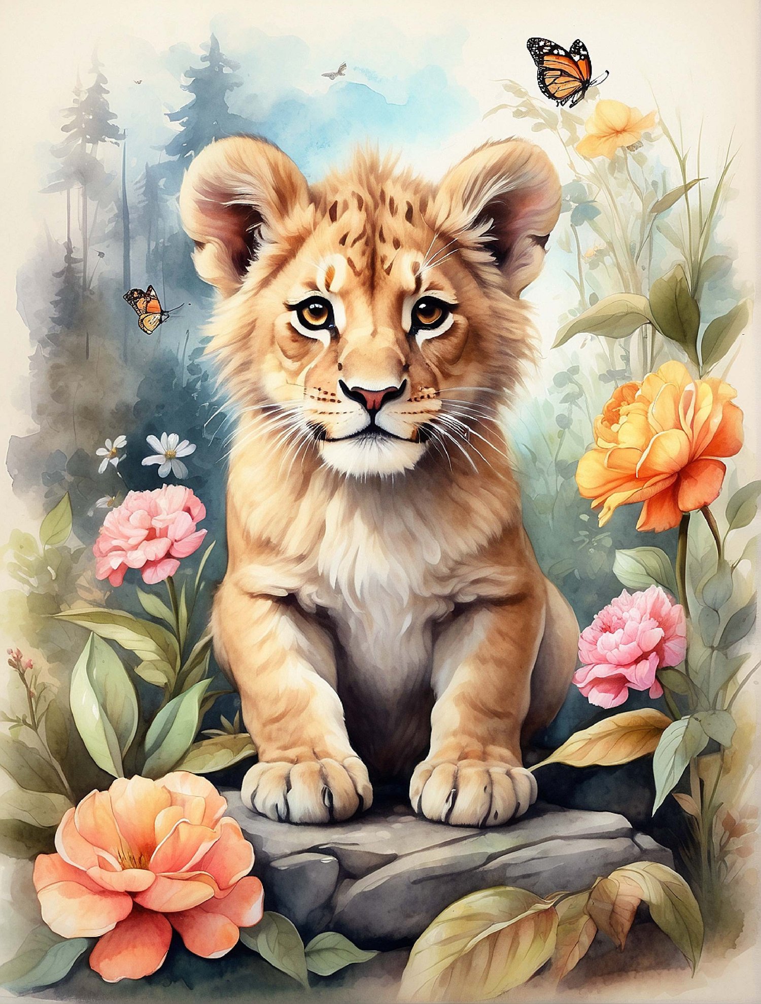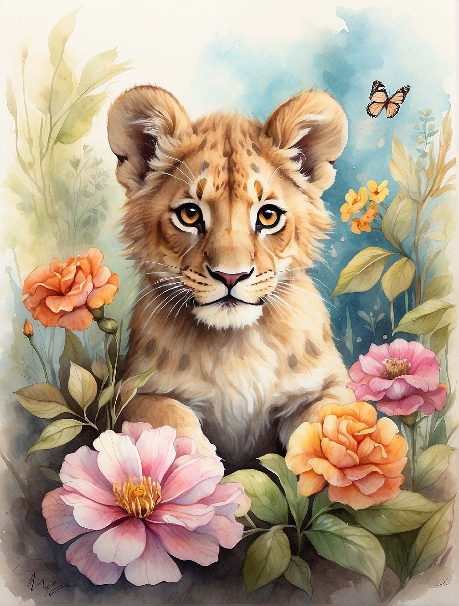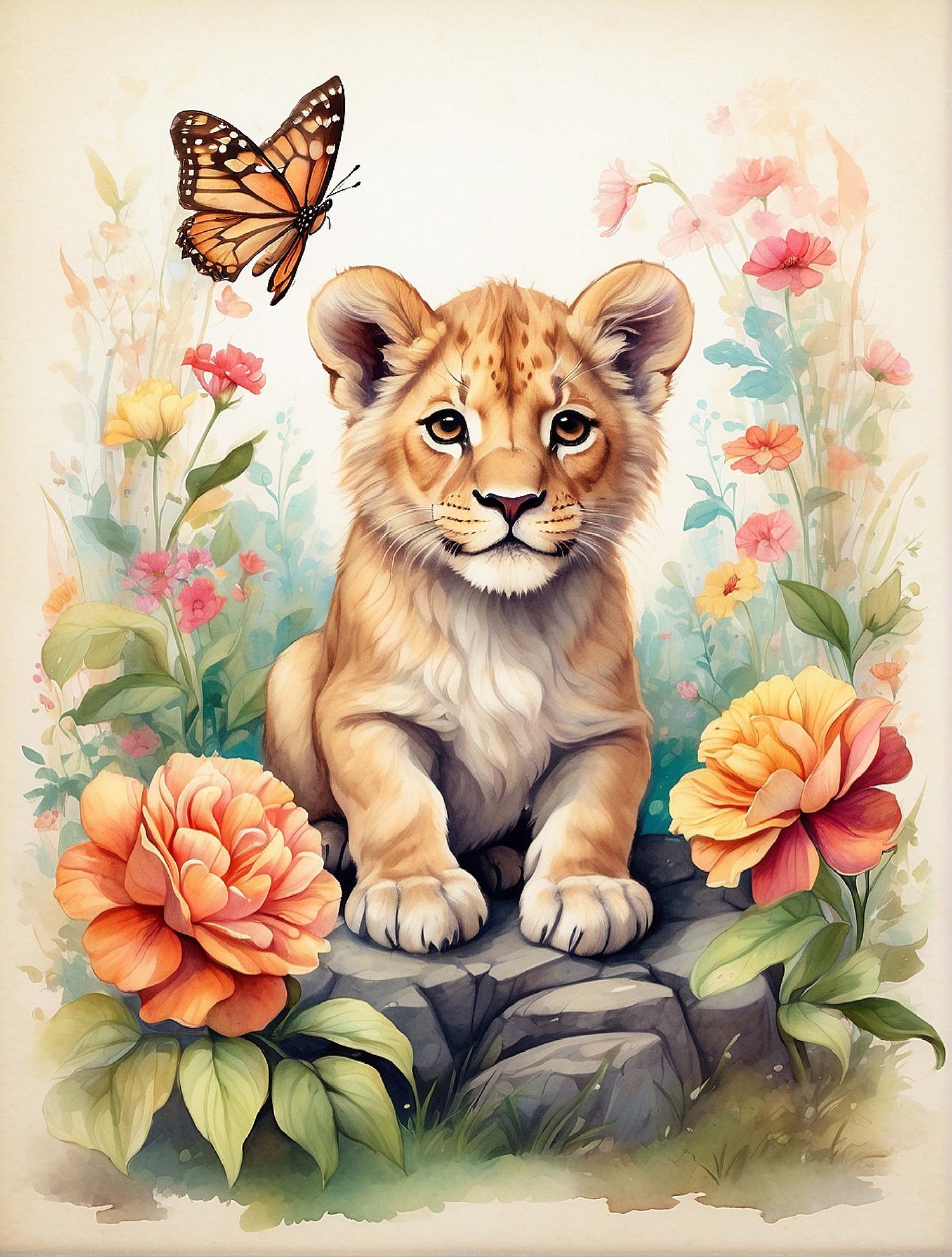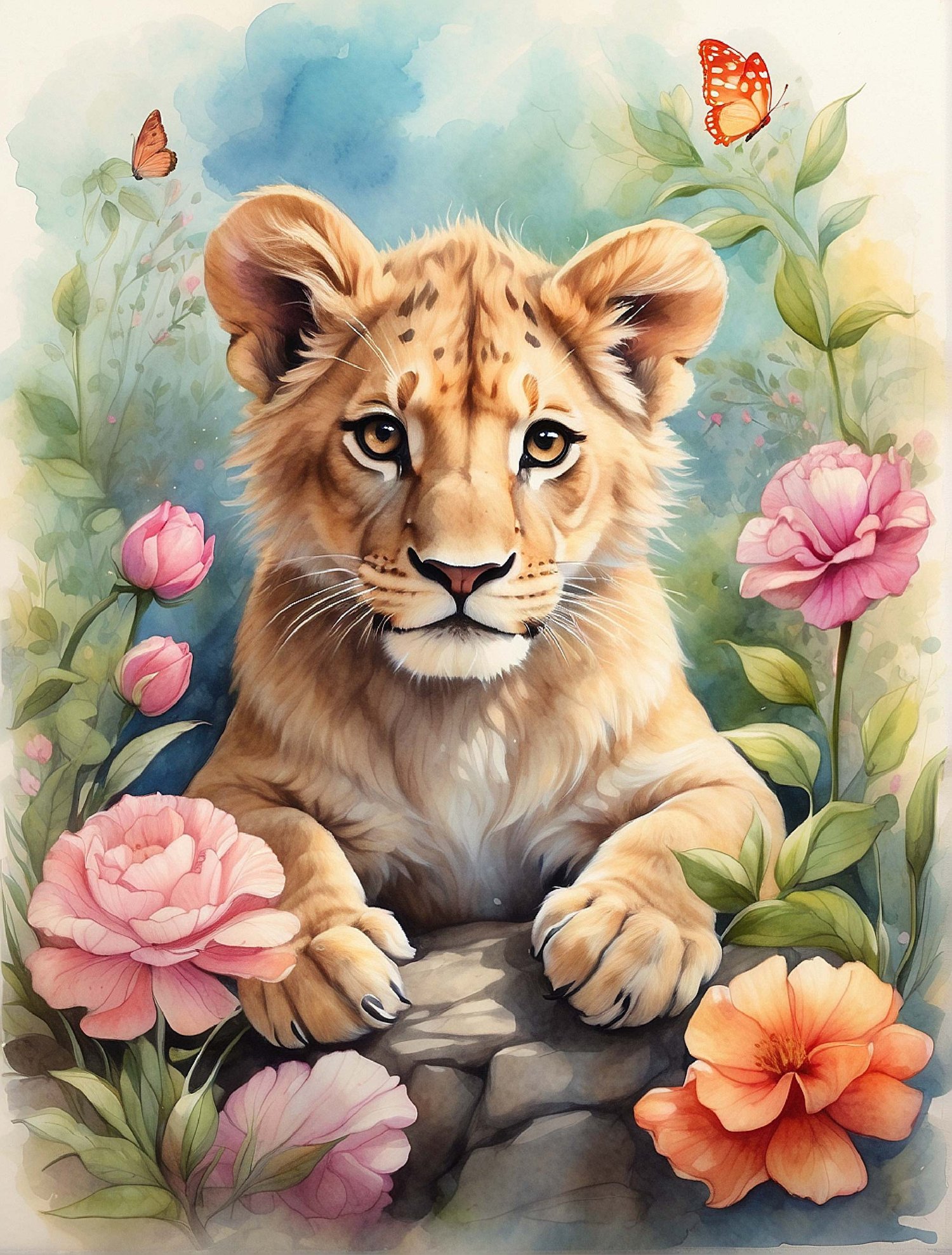 Bring charm and whimsy to your projects with the "Lion Blooming Paradise Clip Art Bundle." This delightful set includes 8 high-quality JPG images featuring the adorable Lion surrounded by lush watercolor flowers and playful butterflies. Perfect for scrapbooking, card-making, invitations, or adding a serene touch to digital designs. Please note that images have a white background and not a transparent background.