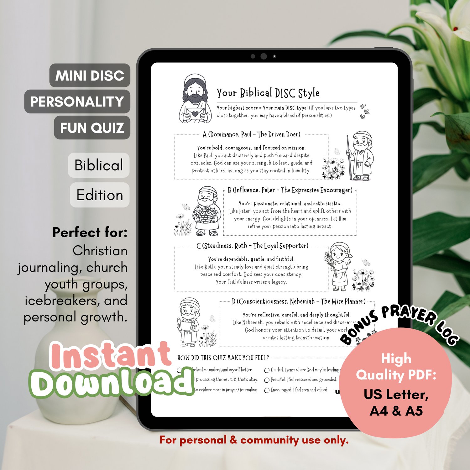 Discover the way God uniquely designed you through this Christian printable personality quiz based on Bible characters and DISC-style blends. This inspiring and introspective tool helps you understand your spiritual gifts, communication style, and purpose—perfect for devotionals, ministry training, and church events.