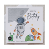 Printed with a cute space theme and the message 'happy birthday' this card is certain to make any recipient smile.