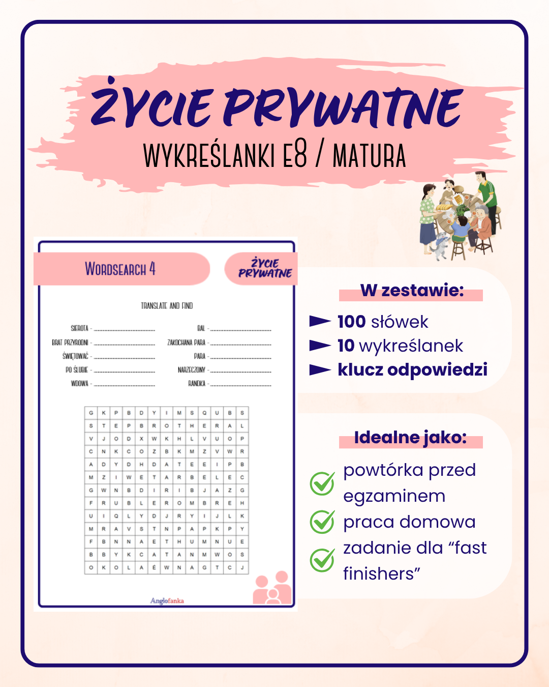 📘✨ Potrzebujesz szybkiego, angażującego materiału do powtórki słownictwa z działu ŻYCIE PRYWATNE?