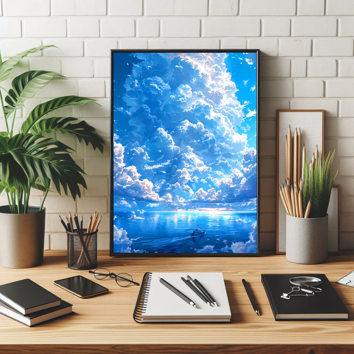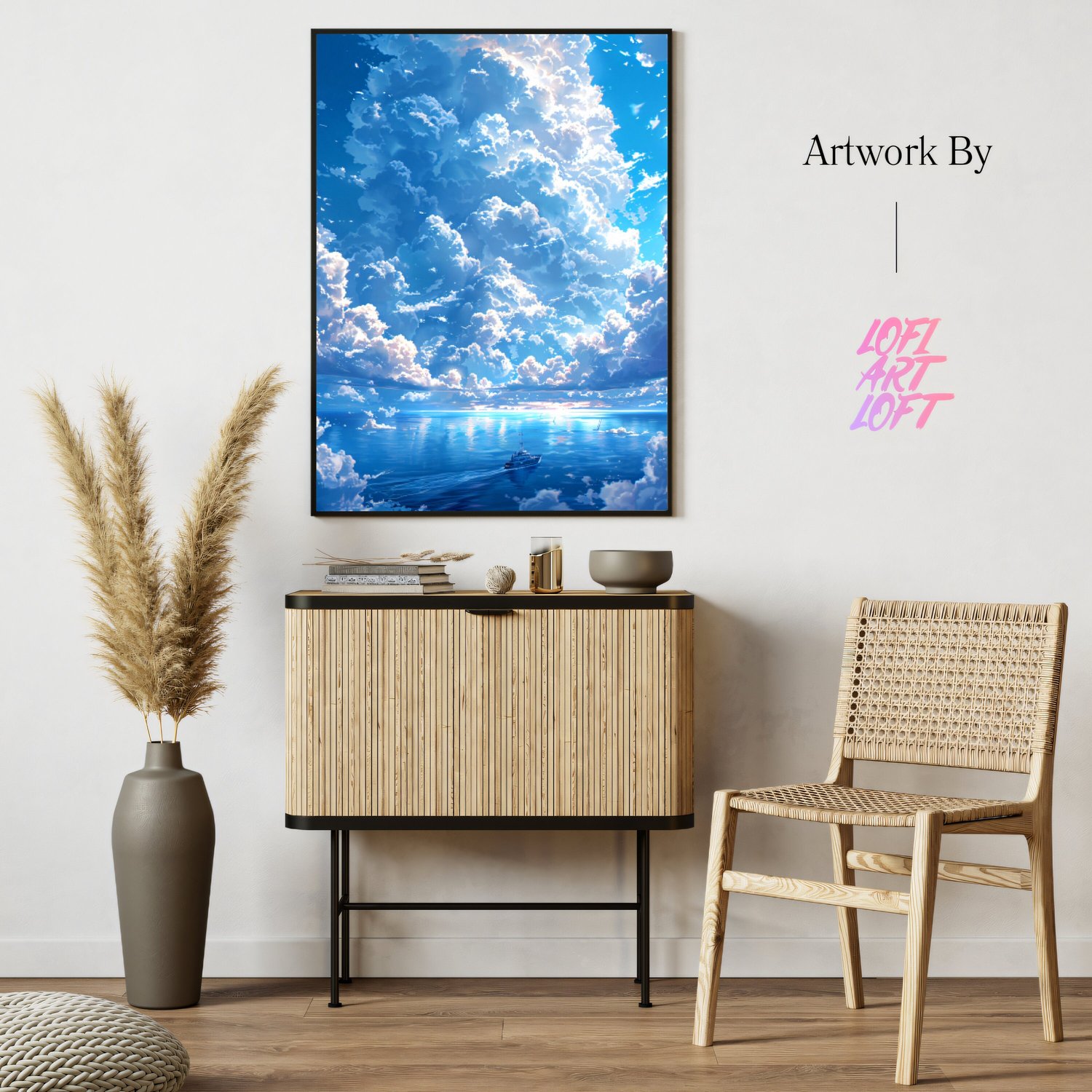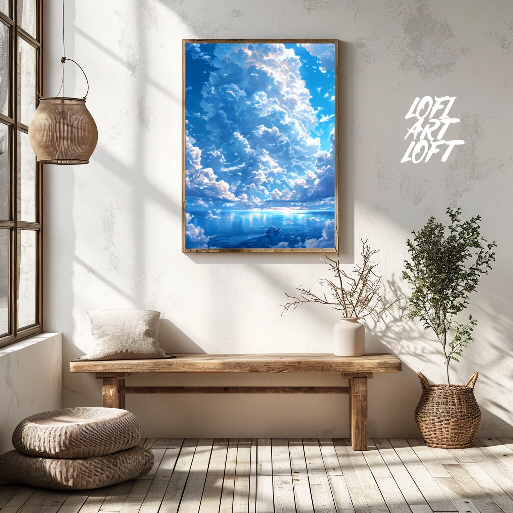 Cloudy Sea - UHQ Digital Lofi Anime Art Print | #9