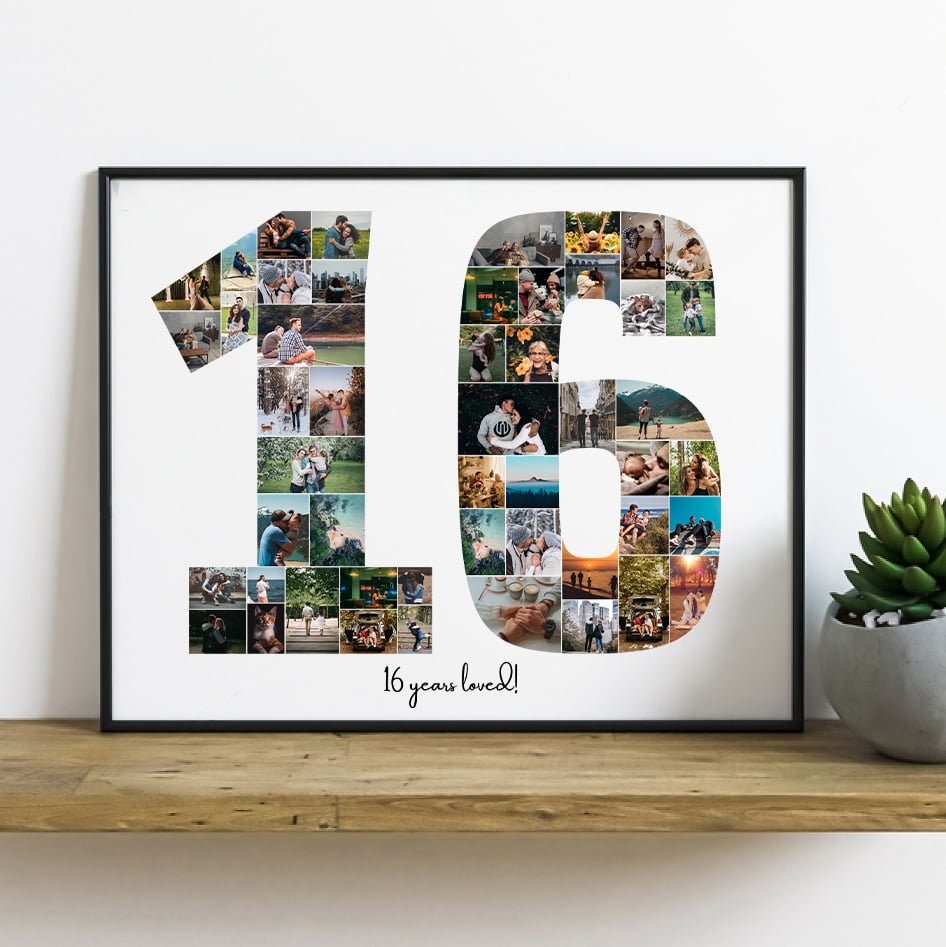 EDITABLE 50 photos, Personalized 16th Anniversary Photo Collage Template Gift for Boyfriend, Birthday Present for him, Digital Printable