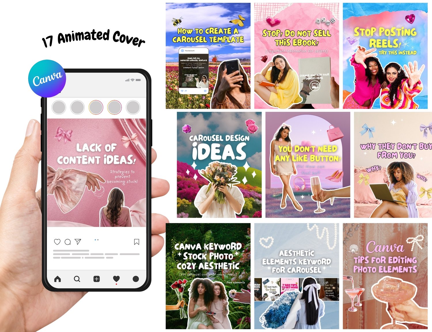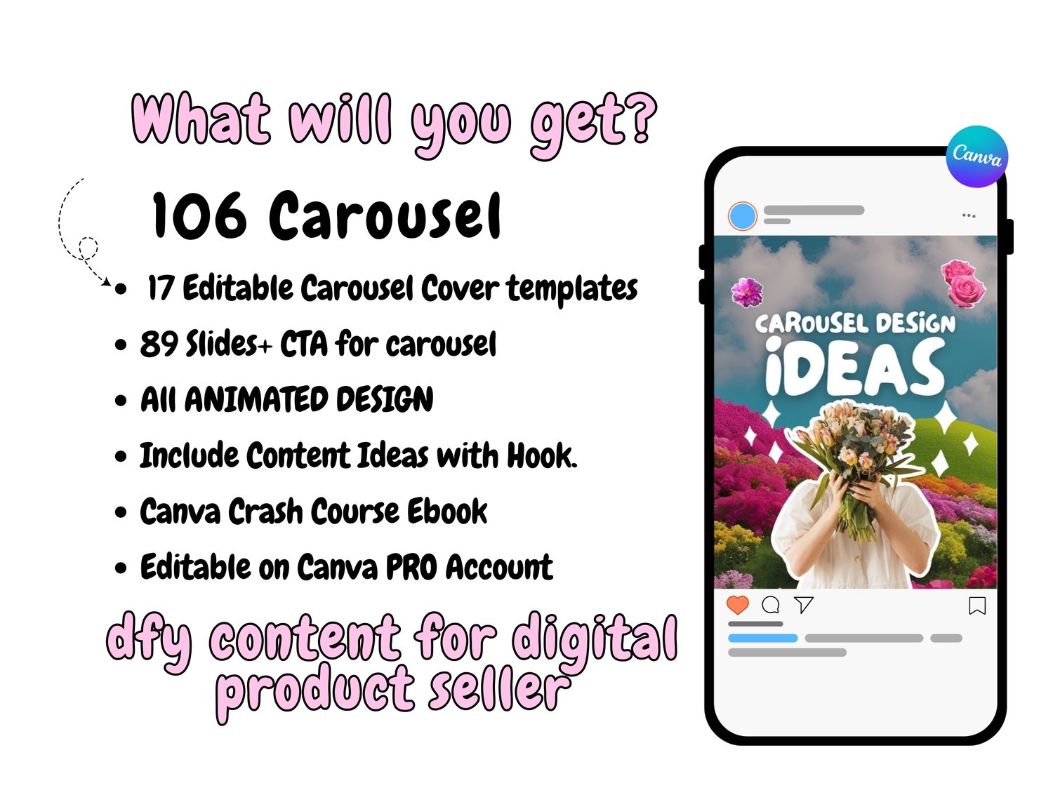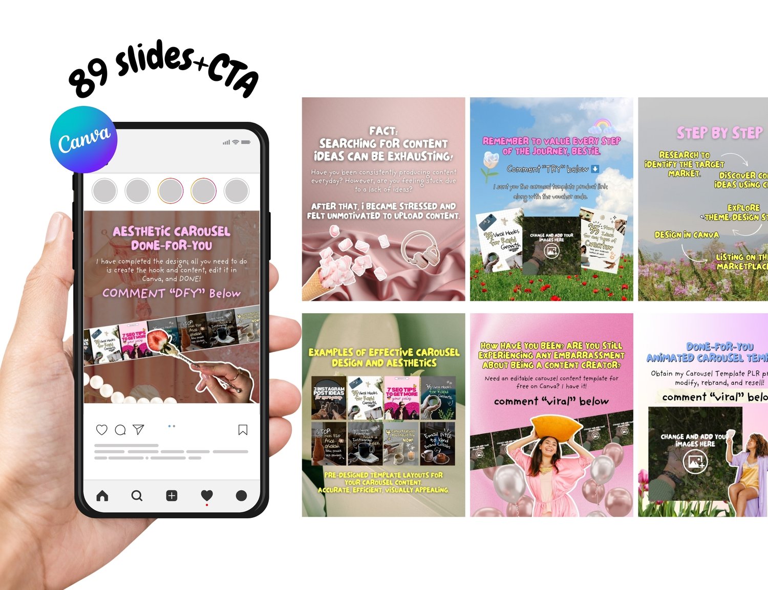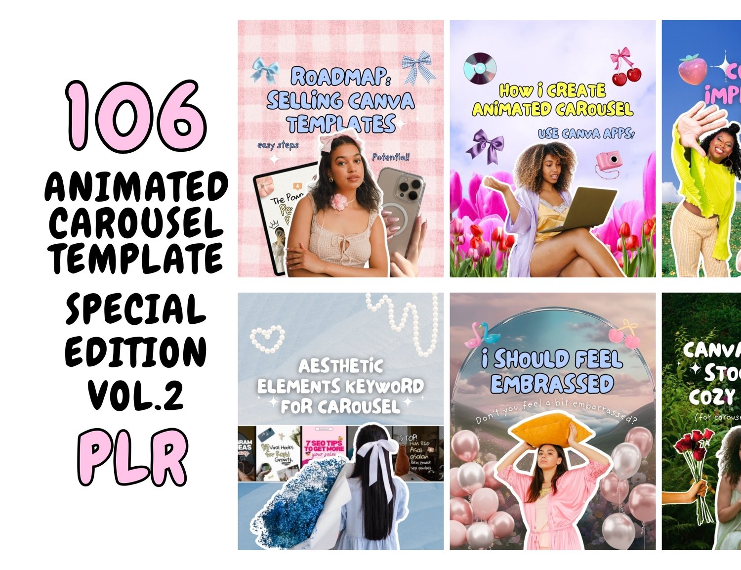 106 Animated Instagram Carousel Templates for Digital Product Seller PLR | Aesthetic Viral Canva Carousel Template 🎨✨Create High-Engagement, Aesthetic Animated Carousels in Minutes!