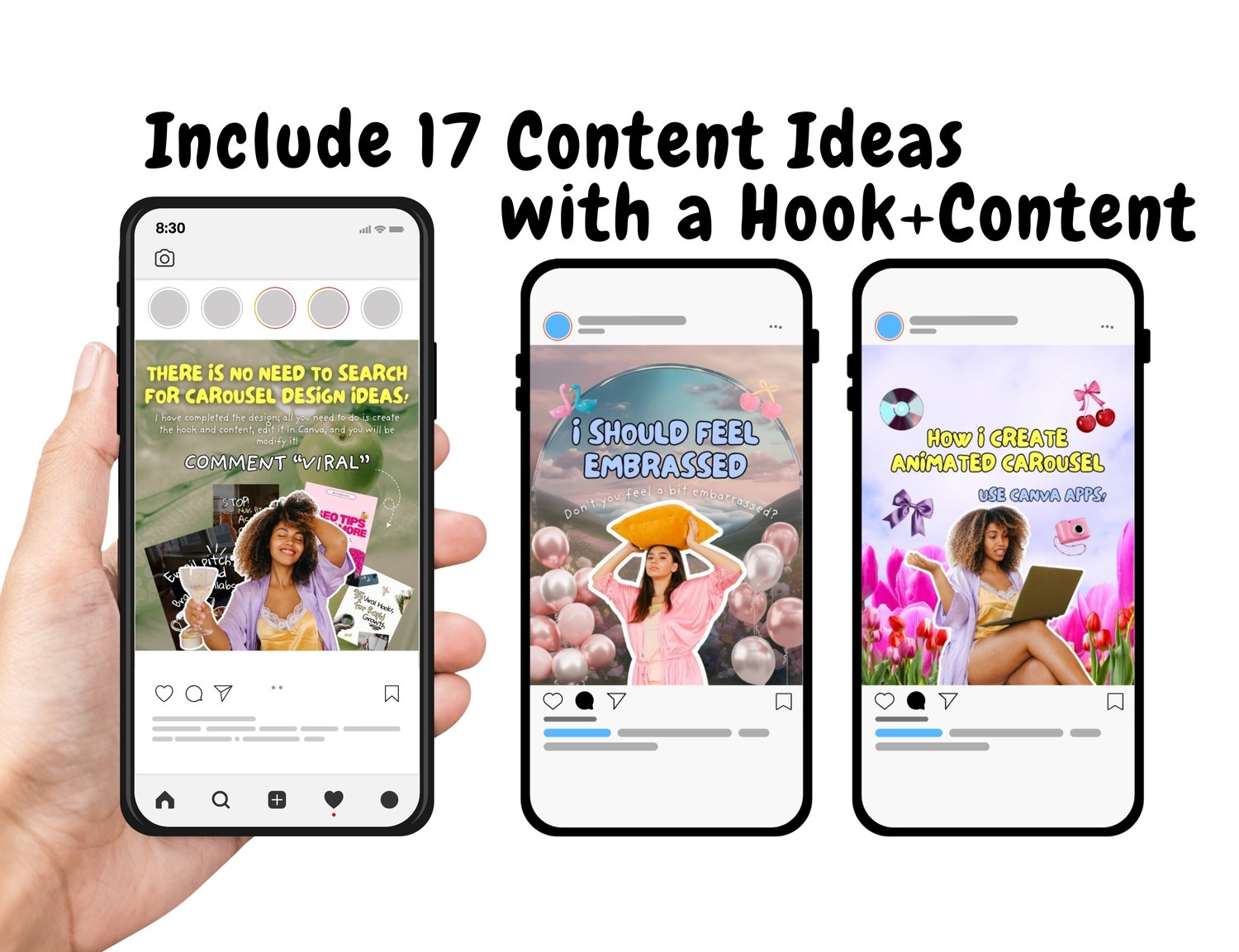 ✅ 106 Fully Animated Instagram Carousel Templates – Designed to be feminine, fresh, aesthetic, and scroll-stopping.
