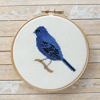 A counted cross stitch pattern of an indigo bunting, a colourful bird from North America. This is one of four colourful buntings available for your stitching pleasure.