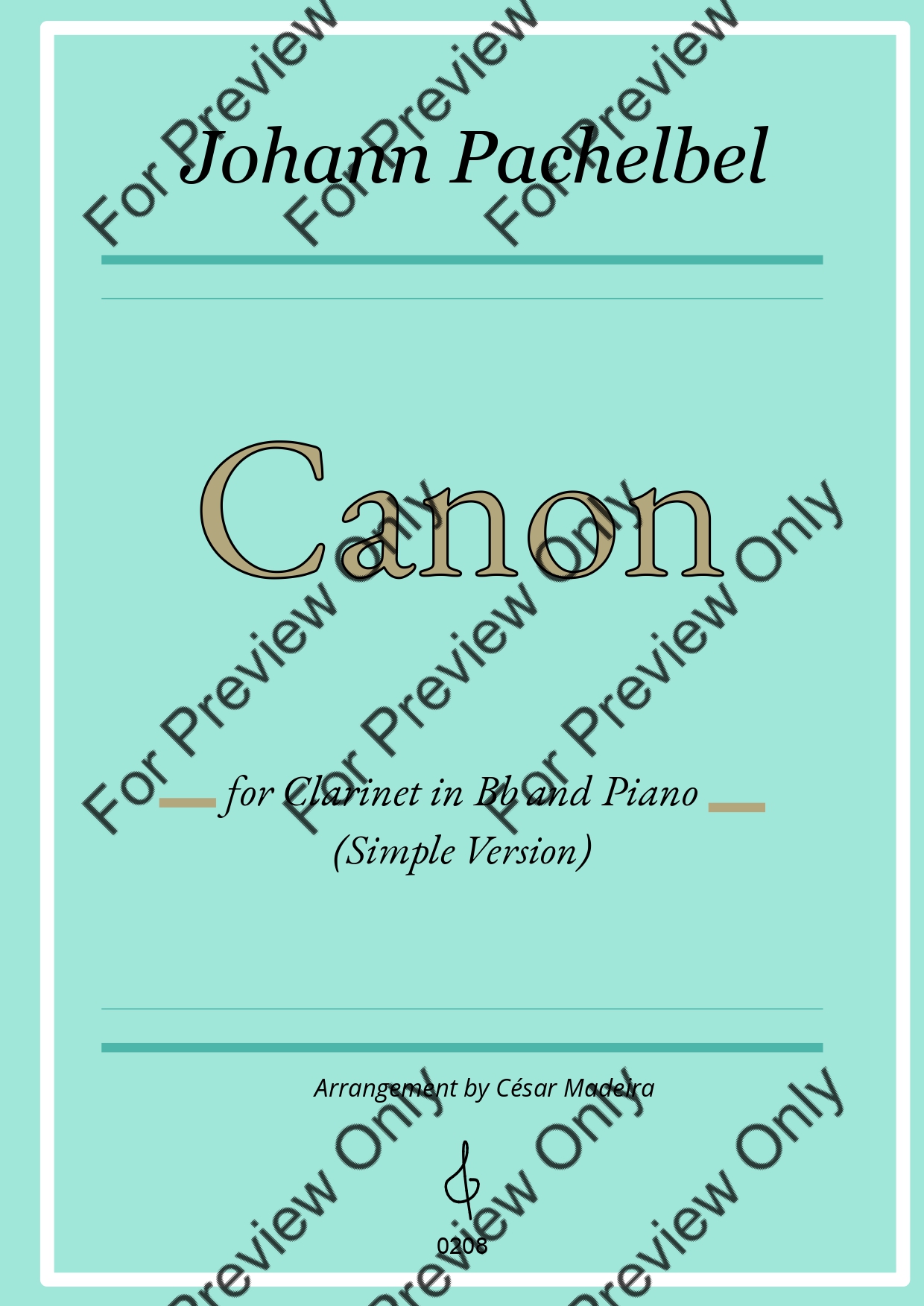 Canon in D by Johann Pachelbel. Arrangement for Beginner Bb Clarinet and Piano. With Full Score and Individual Parts. Have fun!