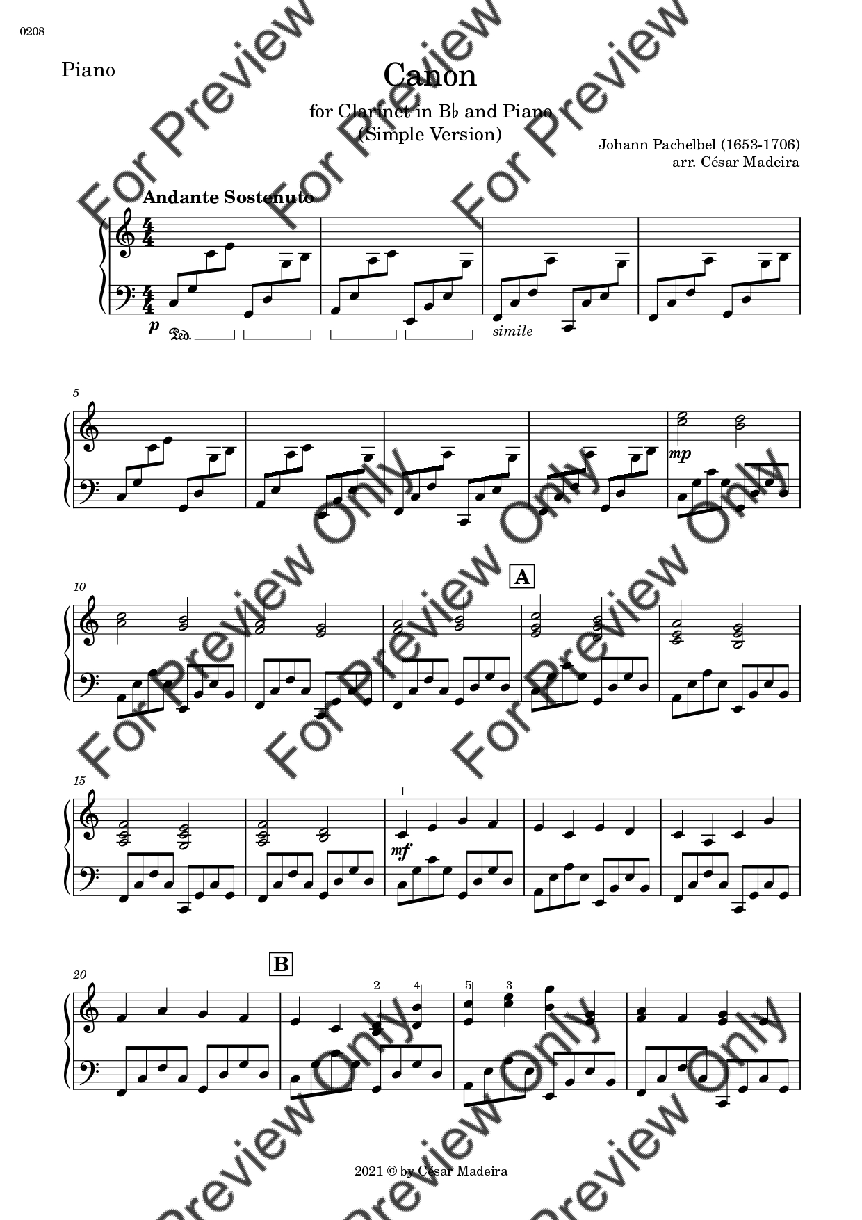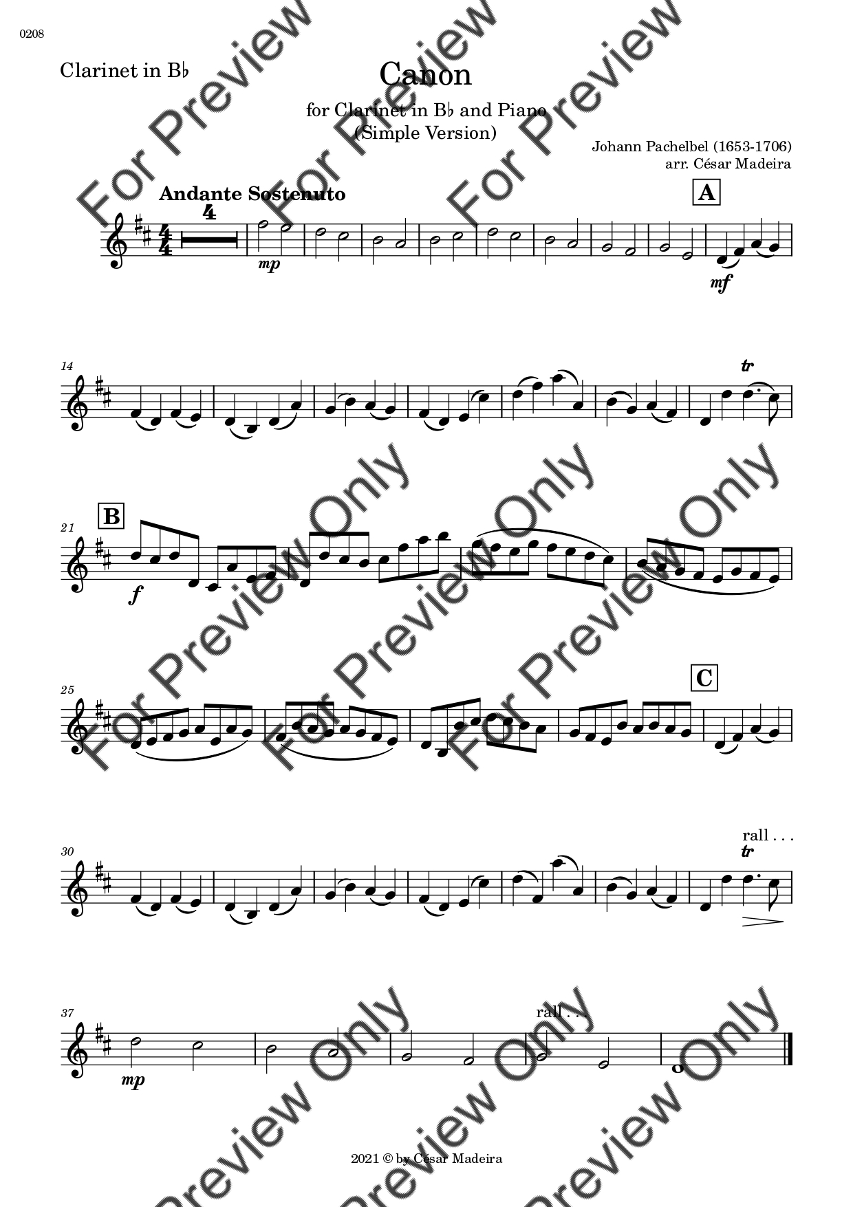 Pachelbel - Canon in D - Easy Bb Clarinet and Piano