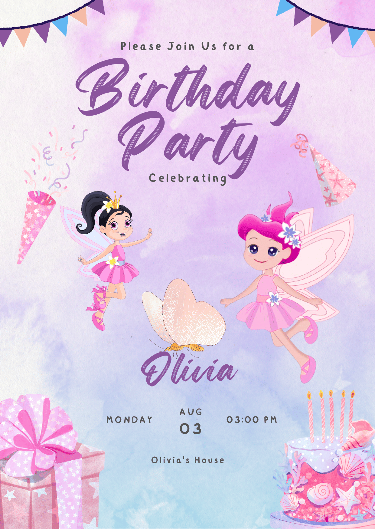 Barbie Fairy Theme Birthday Invitation | Editable Digital Template