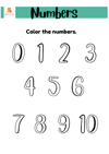 Let your kids learn and have fun with the Numbers. This worksheets have nine different kind of exercises; Color the numbers, Number tracing practice, Count and trace, Counting time, Number matching, Number by words,Color by numbers.