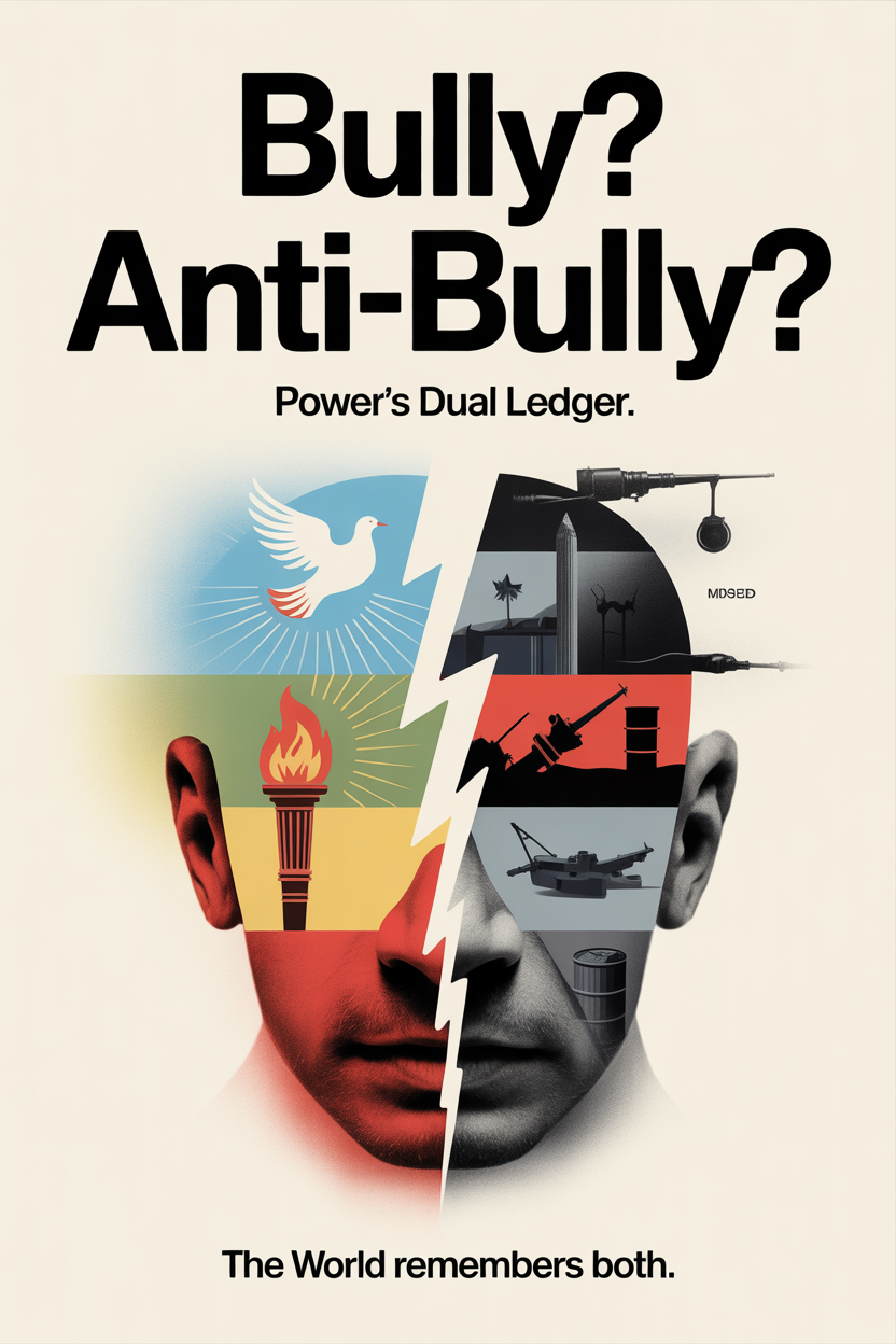 Bully? Anti-Bully?™ is a razor-sharp satirical framework and dual-ledger dissection of power, mapping front-stage myth versus backstage empire to expose systemic hypocrisy. This piece unpacks how nations sell freedom while securing leverage, offering a narrative engine for exploring systemic duplicity with bite. The framework is a powerful investigative manifesto for policy-focused media outlets and high-end publishing. Perfectly timed for fractured global trust, this sharp critique dissects power’s hypocrisy and markets morality.