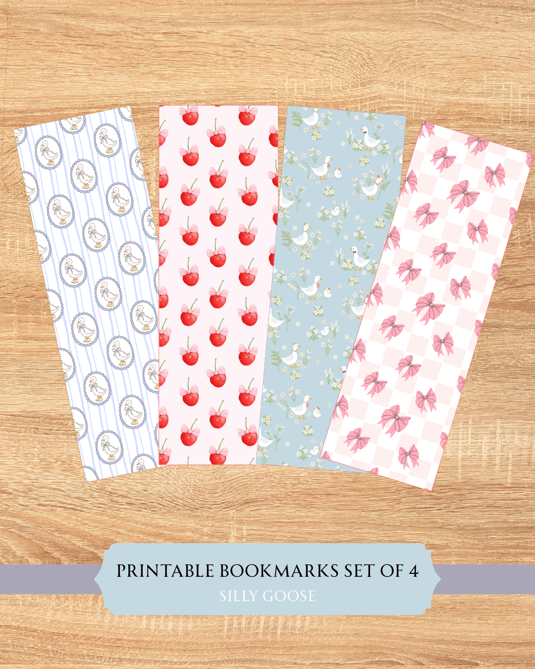 Silly Goose Printable Bookmarks Set of 4 for Book Lovers
