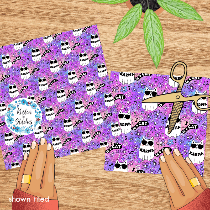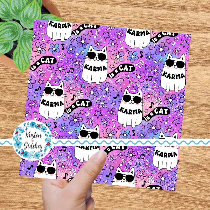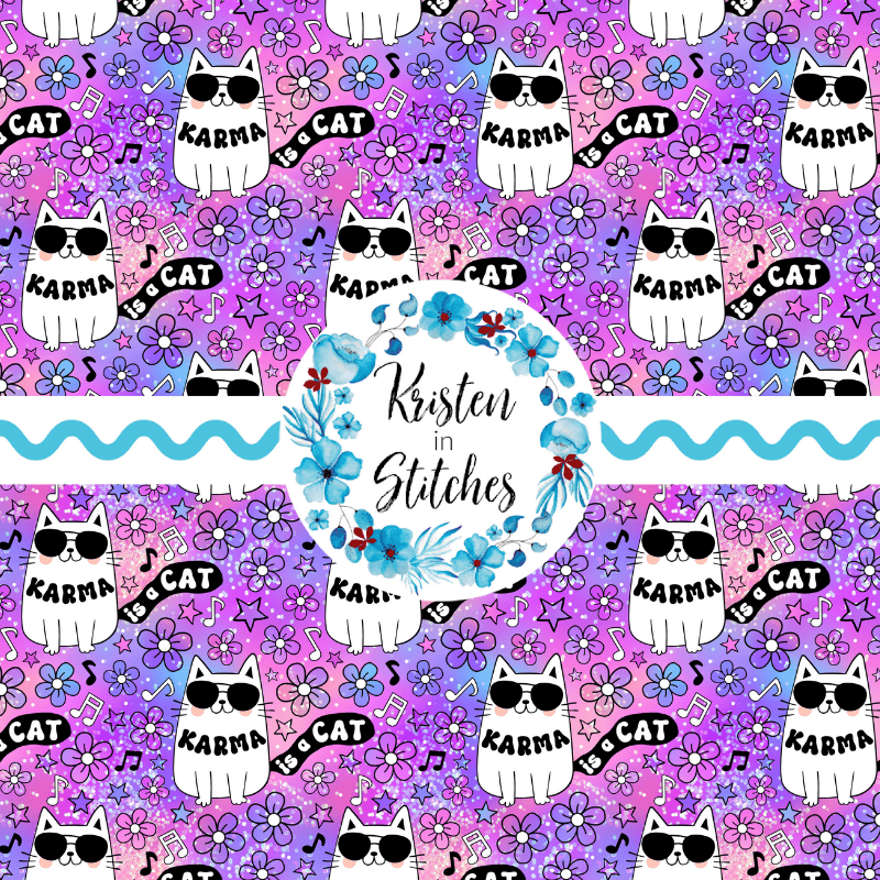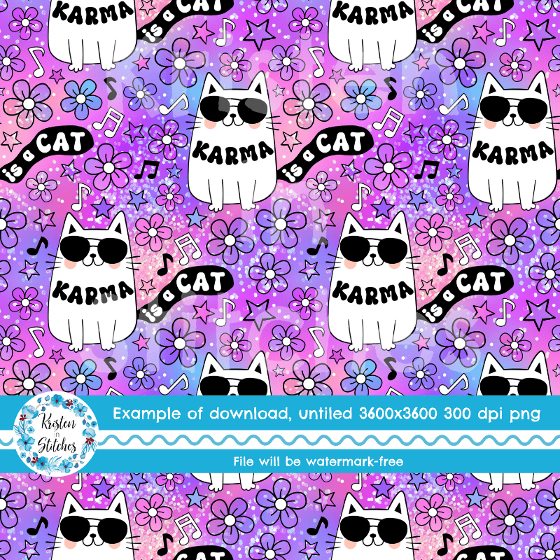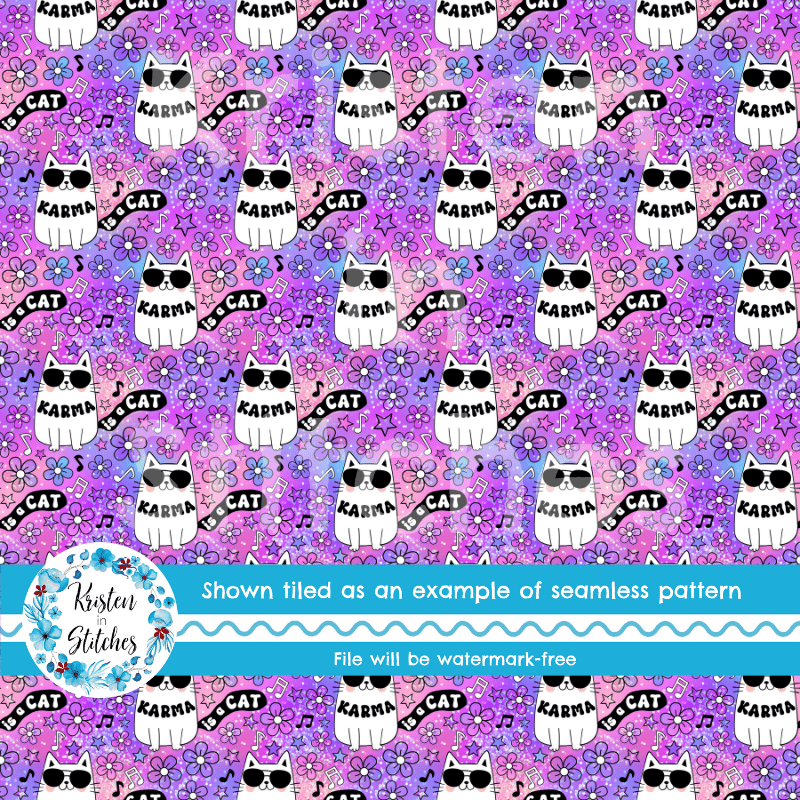 Karma is a Cat Seamless Pattern, Daisy Flowers Music Notes