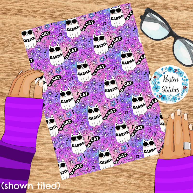 Karma is a Cat floral pattern in colorful galaxy sparkle.