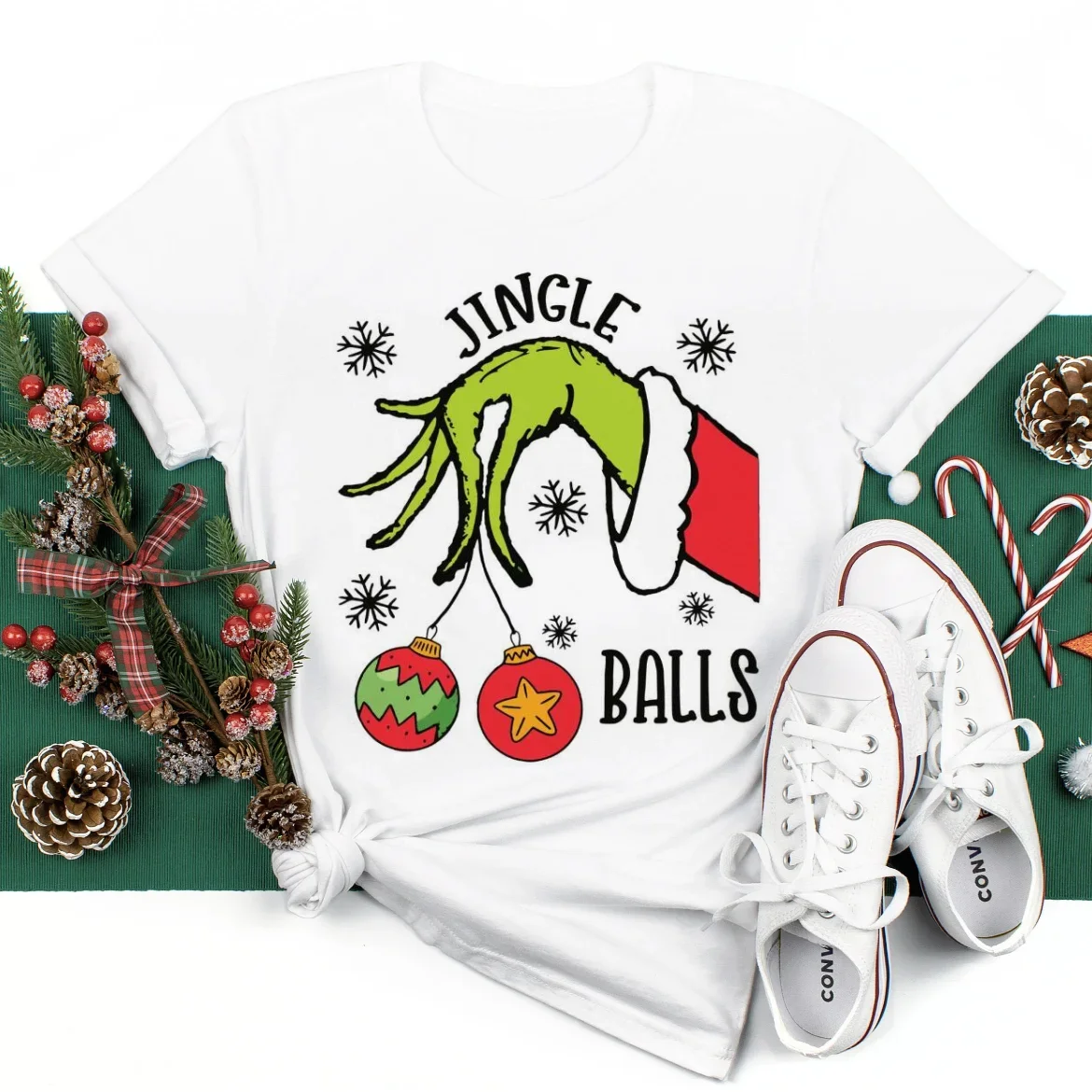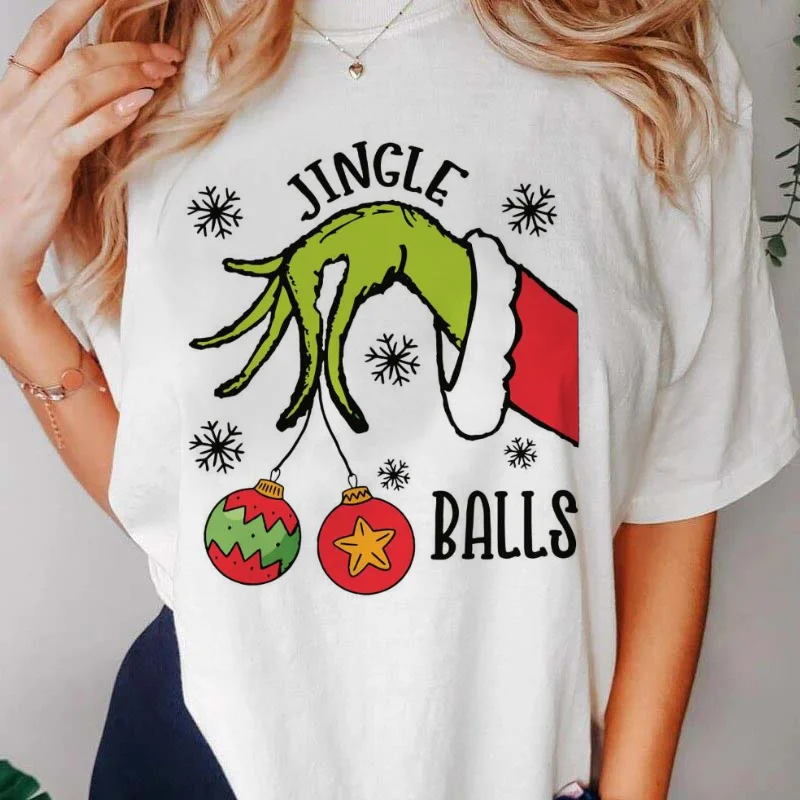 New fashionable and funny Jingle Balls Grinch printed women's T-shirt 90s cute casual short sleeved women's T-shirt