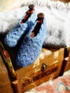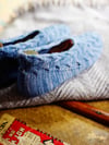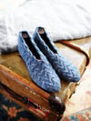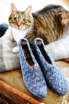 These are tremendous fun to knit. You start at the back of the heel and work some very clever increases and decreases to first make space for your heel then shape the gusset. Then you join to work in the round for the rest of the slipper. You'll feel shockingly clever when you see how they go together!