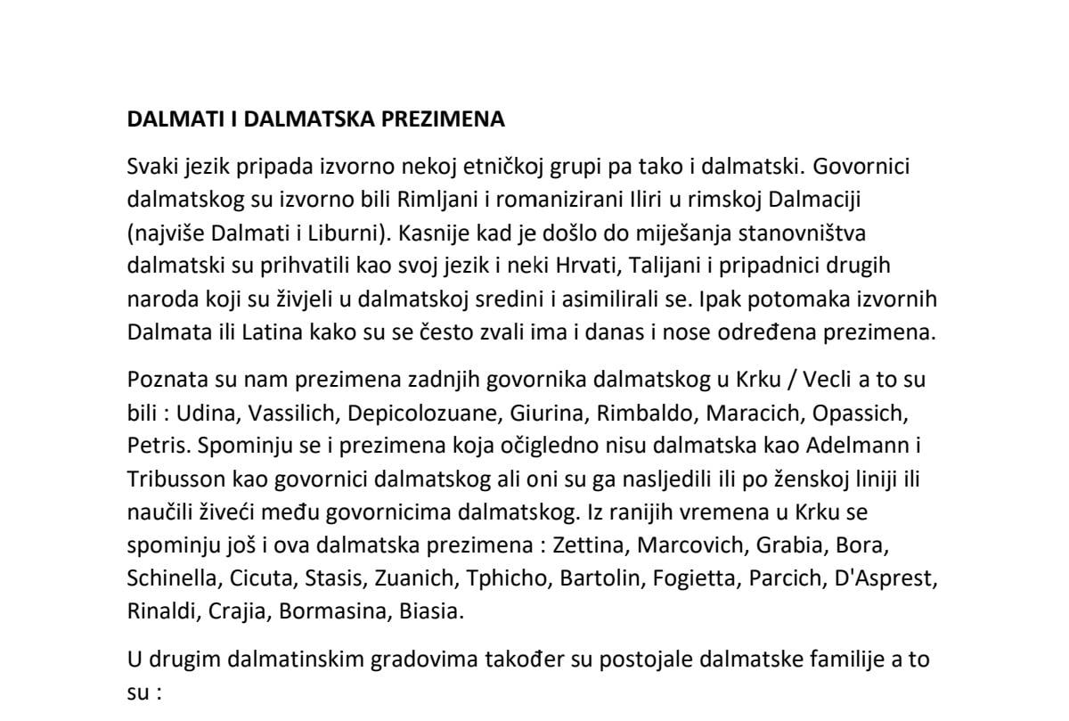 Govornici dalmatskog jezika su u srednjem vijeku i kasnije činili posebnu etničku skupinu poznatu kao Latini ili Dalmati. Neka od njihovih prezimena su i danas prisutna u Hrvatskoj i u dalmatinskoj dijaspori.